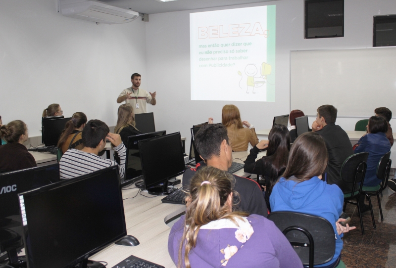 No Bloco 02, os estudantes conheceram a estrutura do curso de Jornalismo - TVFAG, do novo curso de Fotografia - Laboratório de Fotografia; de Publicidade e Propaganda e a outra novidade, a graduação em Design Gráfico - na Agecin.