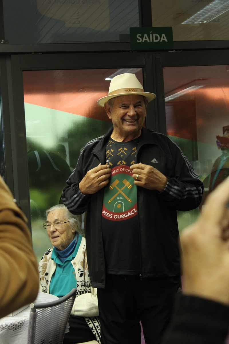 Assis Gurgacz explica que o Croquet "é um esporte inglês e, como curioso, fui para a Inglaterra ver e gostei, então trouxe para cá. Os materiais utilizados, tacos e bolas de madeira, assim como os arcos, são feitos todos aqui. Já fiz dezenas de jogos e distribui para a turma, mostrei para a professora Salete e iniciamos as atividades no Centro de Convivência. Eu jogo sempre às cinco horas da manhã e às cinco horas da tarde, todos os dias. Os benefícios para o corpo são muitos, exercita bastante, a terceira idade está gostando". Como Assis joga ha mais tempo que os adversários, acabou auxiliando os companheiros de jogo nas tacadas.