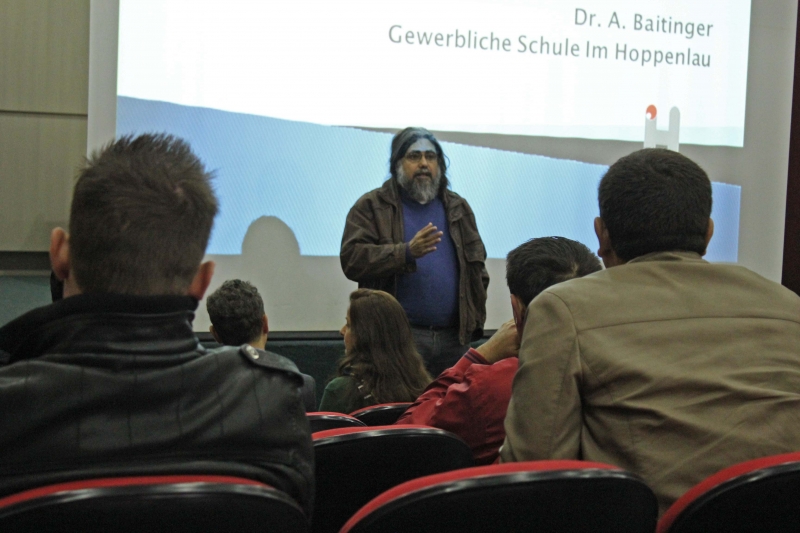 Na abertura do curso, Baitinger mostrou como é a produção de trigo na Alemanha, quais os objetivos do país, a demanda, e explicou todo o processo: do preparo da semente à chegada às padarias.