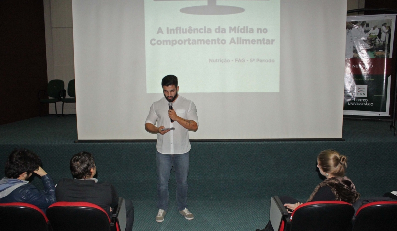 O curso de Nutrição do Centro Universitário FAG promoveu, na noite de ontem (31), uma mesa redonda com o tema "Influência da mídia no comportamento alimentar". A atividade foi organizada pelos acadêmicos do 5º período e contou com três diferentes profissionais para esclarecimento do assunto: Juliana Muniz (jornalista), Henrique Felix (publicitário) e Deisi Fernandes (nutricionista).