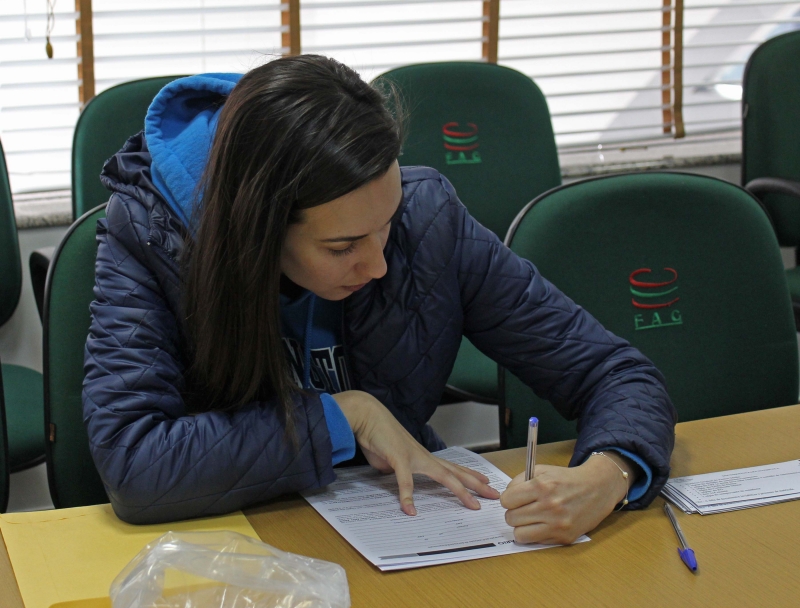 Os alunos aprovados no vestibular de junho do Centro Universitário FAG, começaram a fazer as matrículas hoje (09). A partir das 8h30 os futuros acadêmicos compareceram à reitoria para fazer o cadastro e assinar todos os documentos necessários para a matrícula.
