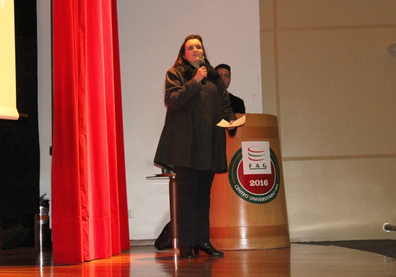 A coordenadora do curso de Agronomia do Centro FAG, Ana Paula Mourão Simonetti, proferiu palavras de agradecimento a toda equipe que organizou o evento e aos alunos que se disponibilizaram a participar da Semana Acadêmica. "Investir no conhecimento é um diferencial, dessa forma, é preciso valorizar os alunos que se dedicam, já que é o conjunto de docentes, alunos e coordenação que faz o curso ser um sucesso", revela. Segundo ela, a 12º edição da Semana Acadêmica está repleta de cursos e palestras com profissionais qualificados da área. "Além disso, há alunos de outras instituições que se inscreveram e irão apresentar trabalhos científicos", conta.
