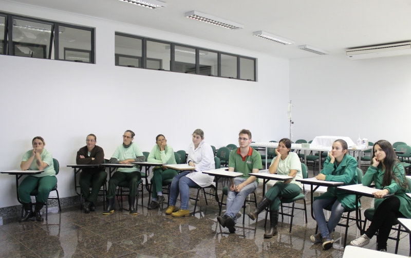 Primeiramente a auxiliar de Recursos Humanos, Tatiane Volff apresentou a enfermeira Catiane Caccato para todos os funcionários, e salientou uma breve introdução sobre o tema do treinamento. Em seguida para ministrar o encontro, a enfermeira Catiane apresentou os seguintes temas: definição de resíduos hospitalar; roupas adequadas; classificação dos resíduos; lixo descartado no lugar correto; acondicionamento de resíduos e como é feito o tratamento do lixo hospitalar.