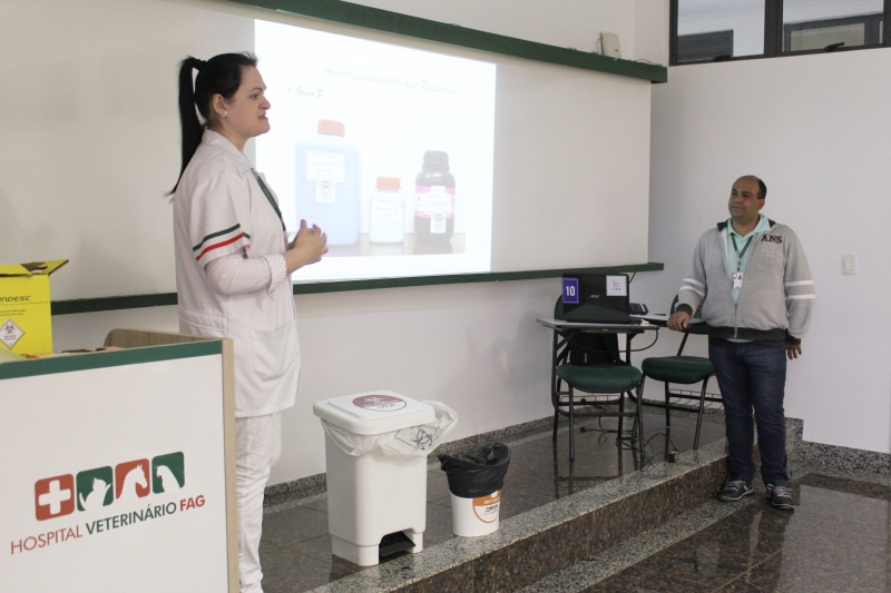 Na sexta-feira (17), os colaboradores do Hospital Veterinário, do Centro Universitário FAG, participaram de um treinamento sobre o uso correto de descarte dos resíduos hospitalares. O encontro contou com a participação da enfermeira Catiane Ceccato, juntamente com a auxiliar de Recursos Humanos, Tatiane Volff, e o Técnico em Saúde e Segurança no Trabalho, Mauricio Aparecido Boeira.