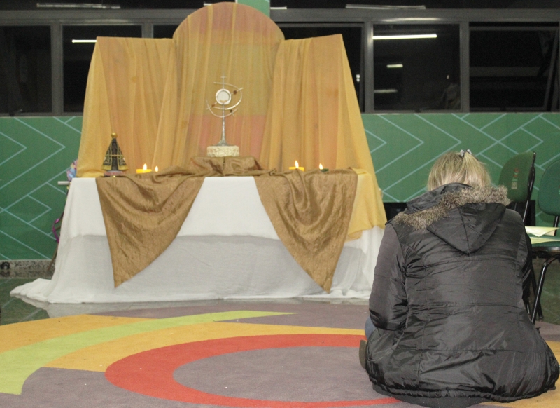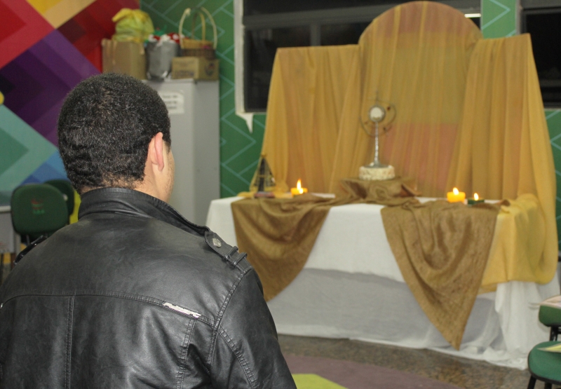 Acadêmicos aproveitaram o espaço para orar e adorar ao Cristo exposto