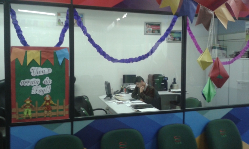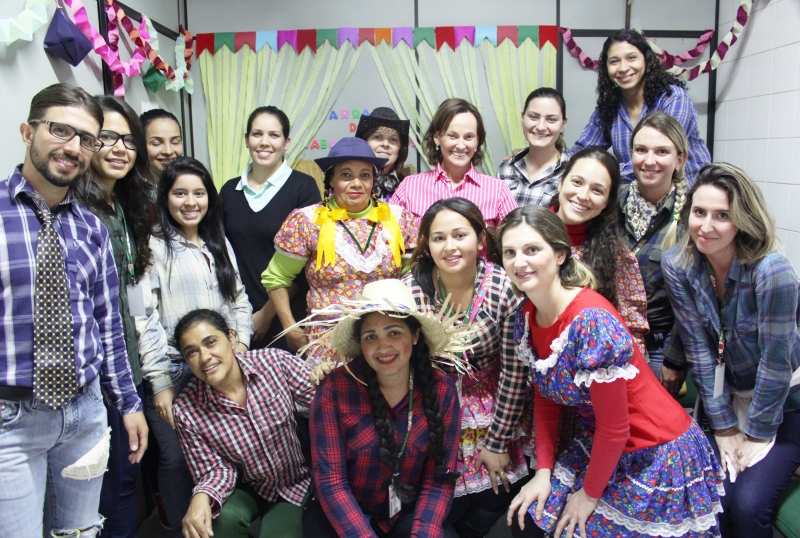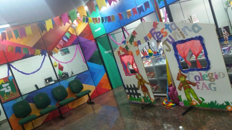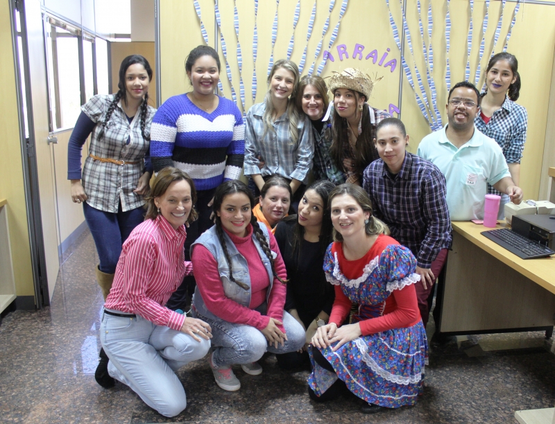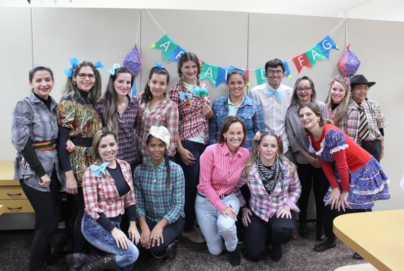 O clima de festa junina chegou ao Centro Universitário FAG. Na última sexta-feira (24), foi dia de trabalhar caracterizado de caipira e com as salas decoradas. A festa junina dos colaboradores da instituição foi regada de bandeirolas, comida típica e muito xadrez.