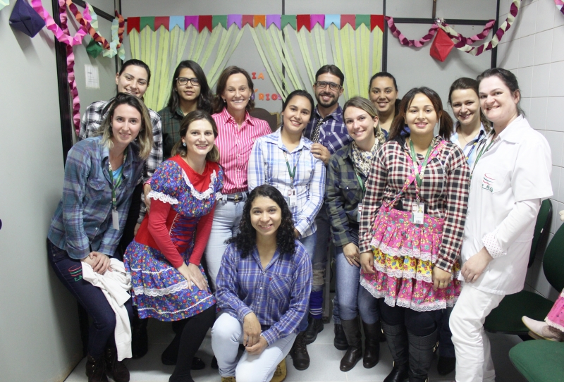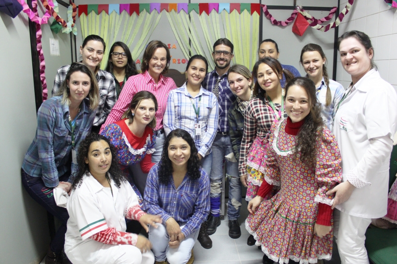 A Pró-reitora administrativa, Jaqueline Gurgacz Ferreira, visitou alguns setores da instituição para registrar com os colaboradores o momento festivo. Na oportunidade, destacou que gostou de ver os enfeites nos setores e também que os funcionários colaboraram vindos caracterizados para celebrar o dia de São João.