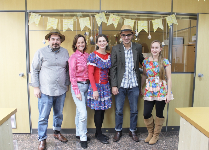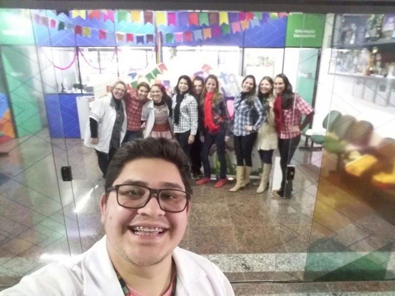 A animação dos funcionários estava estampada no rosto, e Aline Gabriele, responsável pelo NAP (Núcleo de Aperfeiçoamento Profissional), conta que é o primeiro ano que a festa junina acontece em todo o campus. "Faz cinco anos que estou aqui e sempre participava da comemoração com o pessoal do meu setor. Esse ano todo mundo aderiu ao traje caipira", afirma. Aline ainda comentou que os colegas de trabalho Andressa, Fernando, Eduardo e Claudemir, do NAP, Comitê de Ética, EAD (Educação à Distância) e Departamento de provas, trouxeram para o escritório algumas comidas típicas, como a pipoca e o pão de queijo. "Já que não dá para tomar quentão no trabalho, trouxemos chá. Está tudo muito bom", afirma Aline.