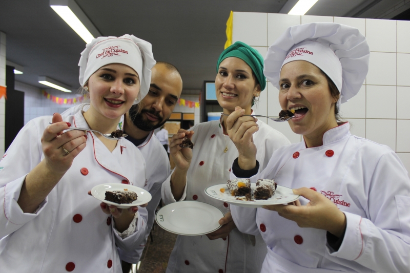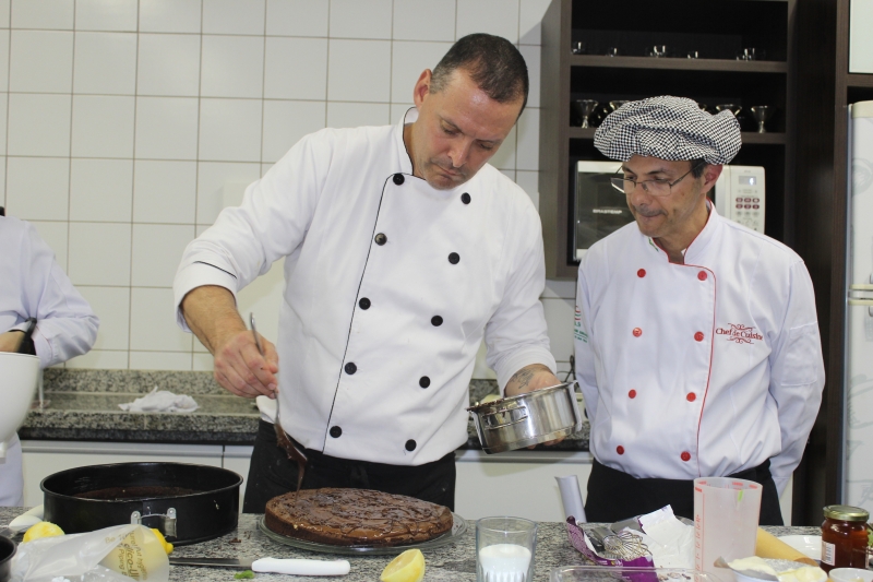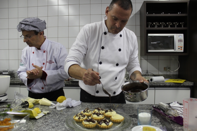 A aula do Chef de Cuisine da última sexta-feira (24) foi doce. O módulo de Patisserie Francesa trouxe aos alunos o conhecimento sobre diversos pratos doces. Apple Pie, Tiramisù Cup, Petit Gateau, Cheesecake, Crème Brûlée, Chocolate Blaster e Pêra ao Vinho foram as receitas que os participantes aprenderam, das técnicas de preparo à apresentação. O curso está na 9ª Edição e recebe orientação do renomado Chef de Cuisine, Alexandre Bressanelli.