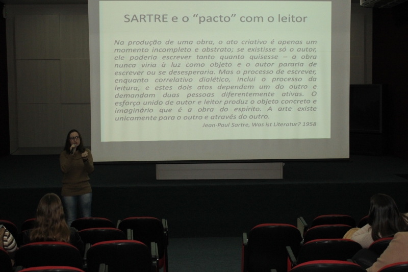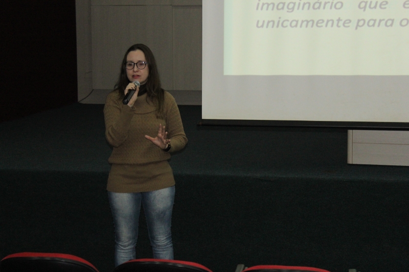 A professora Janaína Arruda foi responsável pela palestra. Janaína é estudiosa da Literatura e defende que a formação leitora é fundamental para a construção de seres humanos críticos e conscientes de seu papel na sociedade. "Parte dessa importante formação é moldada pela Literatura nos bancos escolares, assim, o papel do professor é mediar o processo de construção desses sujeitos, fazendo uso do texto literário. É importante ressaltar para os acadêmicos o laço que a Literatura pode criar com os leitores durante a formação e como o professor pode auxiliar nesse processo. Não se trata de uma abordagem única, o professor deve construir essa aproximação, por isso os textos literários mais diversificados podem e devem fazer parte dessa construção, deixando de lado preconceitos com títulos ou autores para que seja uma experiência produtiva. À medida que evoluímos, os textos literários se tornam mais densos. Não é mágica, é leitura e emancipação do sujeito. Eis a função da Literatura: formar homens capazes de mudar a própria realidade", conclui.