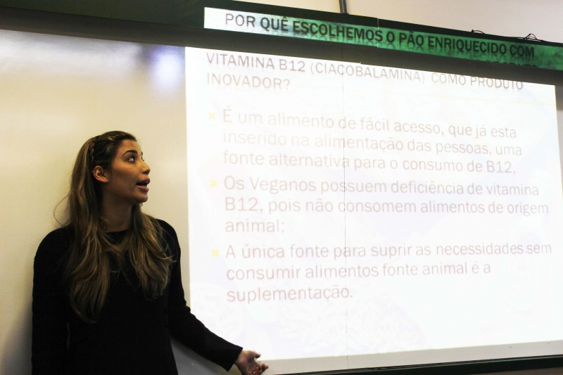 O foco dos alunos foi em alimentos saudáveis e alguns também ligados a públicos específicos. Foi o caso do Pão Integral Vegano Enriquecido com Vitamina B-12, feito pelo primeiro grupo a se apresentar. "Quem adota a dieta vegana tem a alimentação restrita e pensamos em suprir uma defasagem que existe no cardápio desse público. Com uma fatia do pão, ele atinge 50% do valor diário de B-12 necessário", esclarece Silmara Dayane Fiorentin, acadêmica do curso.