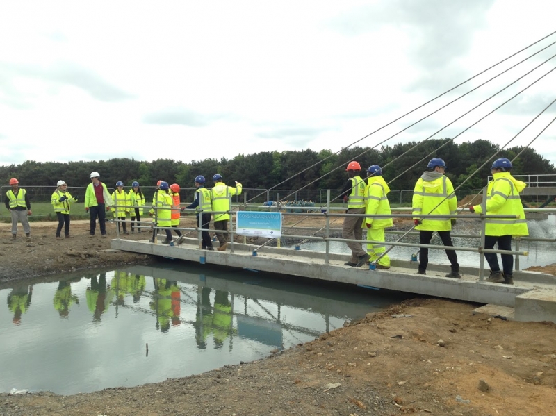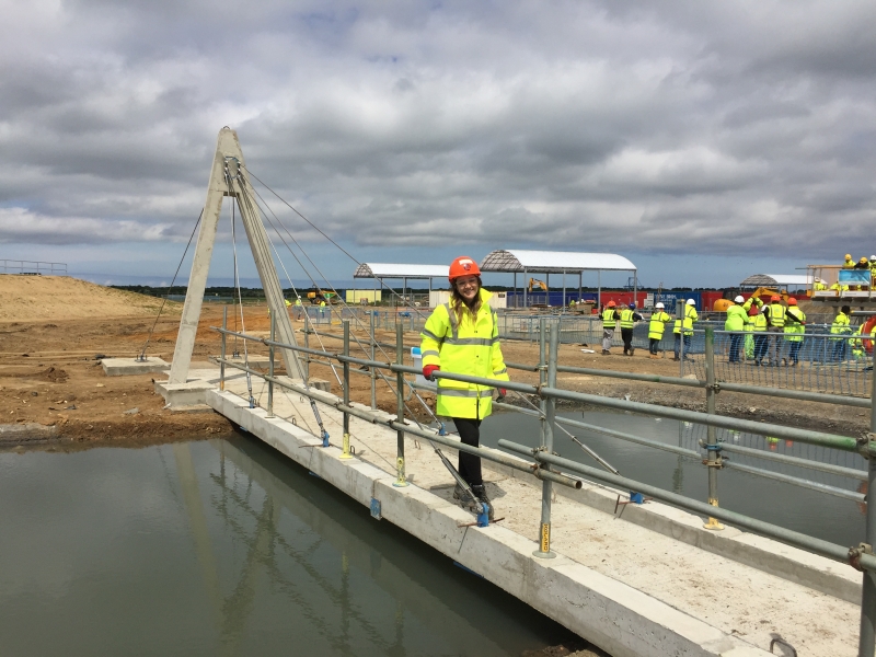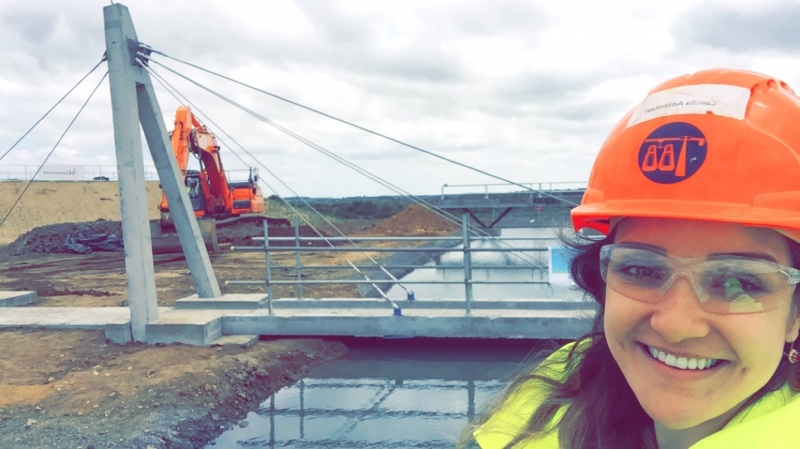 Na disciplina de Construction Site Practice, a turma de Camila foi convidada para passar a semana no interior da Inglaterra, para ter a oportunidade de ver e sentir a teoria aprendida em projetos de construção colocada em prática. "Em equipes designadas, construímos um projeto de construção (no caso do meu grupo, trabalhamos no projeto e execução da Ponte Brewery Wharf). Trabalhamos em todas as diretrizes de saúde e segurança para cada atividade que era realizada. O interessante é que gerenciávamos a nós mesmos e designamos a hierarquia da equipe, pois os professores e engenheiros responsáveis estavam presentes somente assistindo. Os próprios alunos que colocaram a mão na massa (literalmente)", pontua.