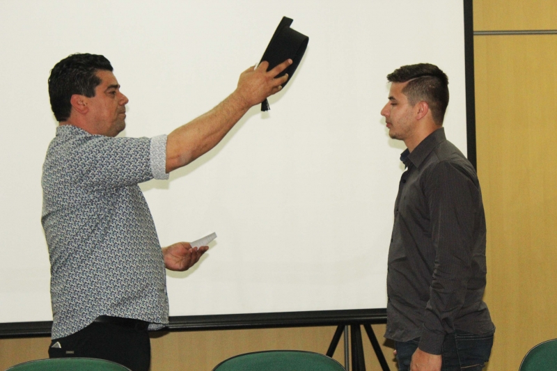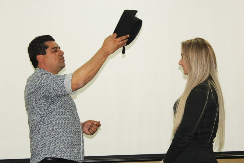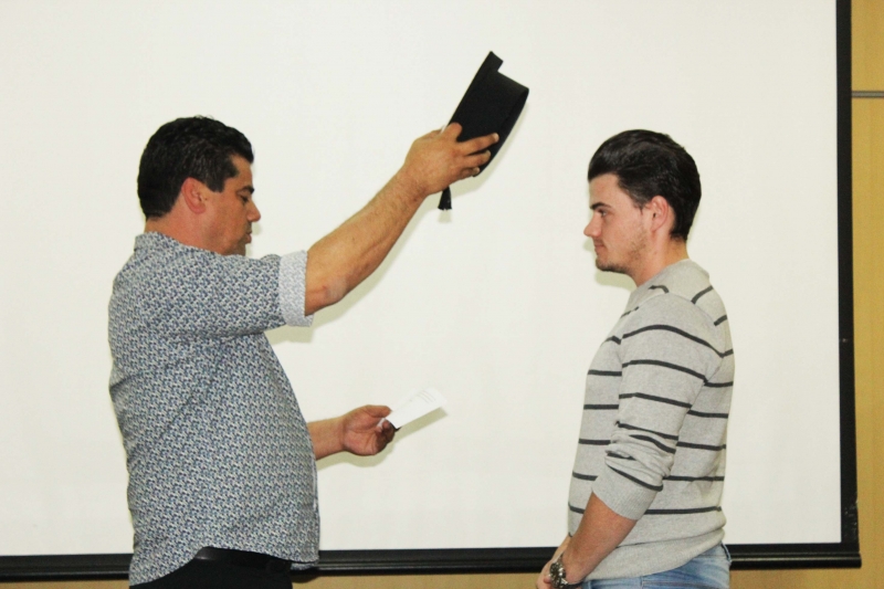 A colação de grau aconteceu na sala de Atos da instituição, na Reitoria, e teve como presidente o Pró-Reitor acadêmico, professor Afonso Cavalheiro Neto. Familiares e amigos acompanharam a solenidade.