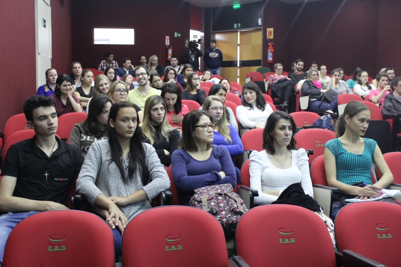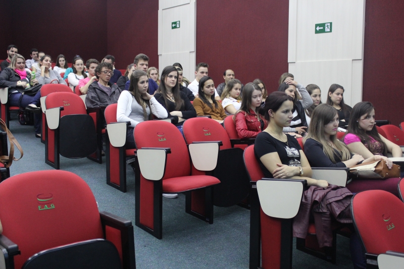 Estiveram no auditório do bloco 2 os alunos do 4º e 6º períodos, para se prepararem para as disciplinas de estágio que têm nesse semestre. "O 4º período tem a disciplina de Saúde Coletiva, com estágios nas Clínicas da FAG e nas Unidades Básicas de Saúde. O 6º período tem a matéria de Farmácia Hospitalar, com tempo dedicado no Hospital São Lucas e na Unidade de Pronto Atendimento do Jardim Veneza", esclarece o professor e Coordenador adjunto do curso, Giovane Zanin.