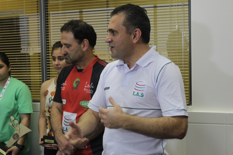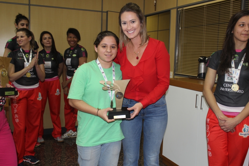 As equipes fizeram a entrega simbólica dos troféus à Pró-Reitora Administrativa do Centro FAG, Jaqueline Gurgacz Ferreira, ao Vice-Reitor, Sérgio de Angelis, e à coordenadora da Coopex, Aline Gurgacz Ferreira Meneguel. "Fomos criteriosos na escolha de quem iria para os Jogos, justamente para mandarmos os melhores em cada modalidade, e o resultado nos mostrou que fizemos a escolha certa", comenta o Vice-Reitor.