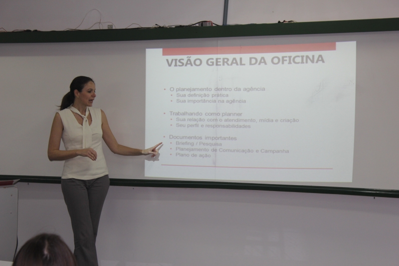 A publicitária falou da importância de um planejamento dentro de uma agência. "O planejamento deve estar bem estruturado numa campanha. A principal função é acompanhar o mercado para detectar oportunidades e tendências", revelou. Diante disso, é possível identificar o que está em alta no mercado e o que as pessoas estão procurando, o que facilita nas escolhas. A estudante Natália Passos está ansiosa para ver o seu projeto finalizado, mas diz que é necessário um encontro assim. "Está tudo muito corrido, mas ter esse contato com uma profissional como a Leudimila é essencial para os nossos trabalhos, além de a gente sair daqui com uma visão diferente do mercado de trabalho", relatou.