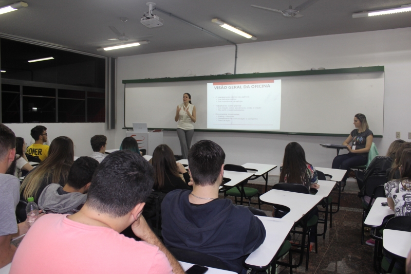 Na disciplina de Trabalho de Conclusão de Curso (TCC), do 8º período de Publicidade e Propaganda do Centro FAG, está sendo realizada uma parceria com profissionais do mercado para ministrar oficinas que vão auxiliar os acadêmicos na etapa final de seus projetos experimentais. Os professores e organizadores dessa atividade são: Celina Albertassi, Larissa Abreu e Sérgio Kulak. Na última terça-feira (02), os estudantes participaram de uma oficina de Planejamento com a profissional Leudimila Parcianelo, da agência Enjoy de Cascavel.