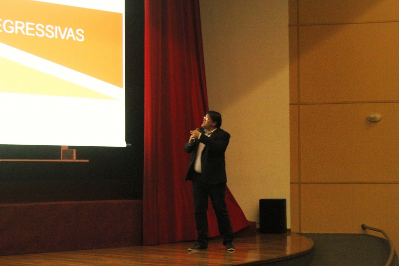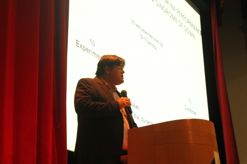 O palestrante abordou a síndrome de down sob diferentes aspectos: o olhar para a Síndrome de Down no século XXI; alterações no Desenvolvimento Motor de indivíduos com Síndrome de Down; a relação entre o desenvolvimento motor e desempenho escolar de crianças com síndrome de Down e as estratégias de intervenção para o desenvolvimento motor de indivíduos com Síndrome de Down.