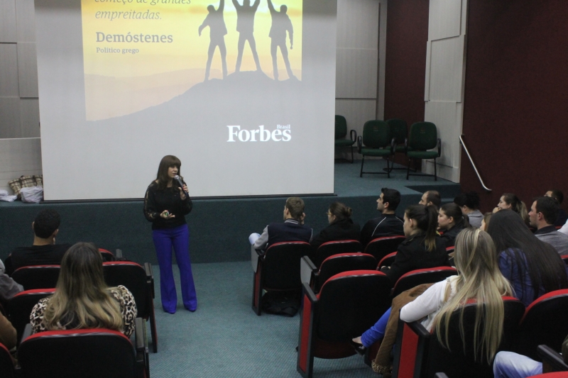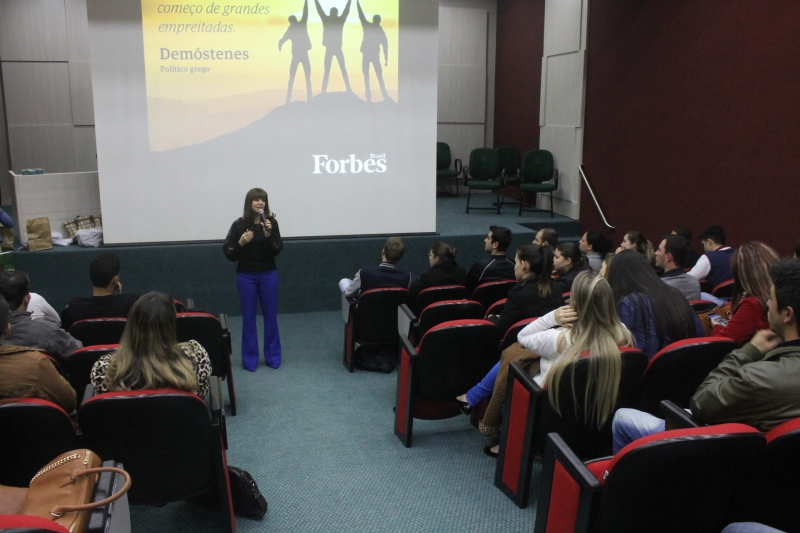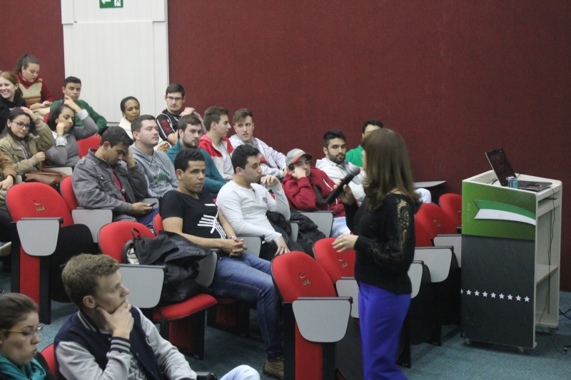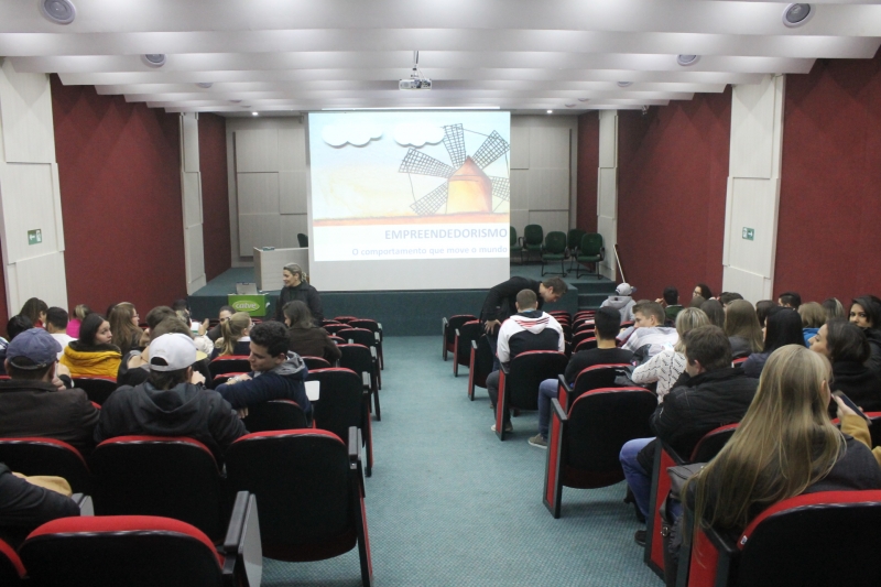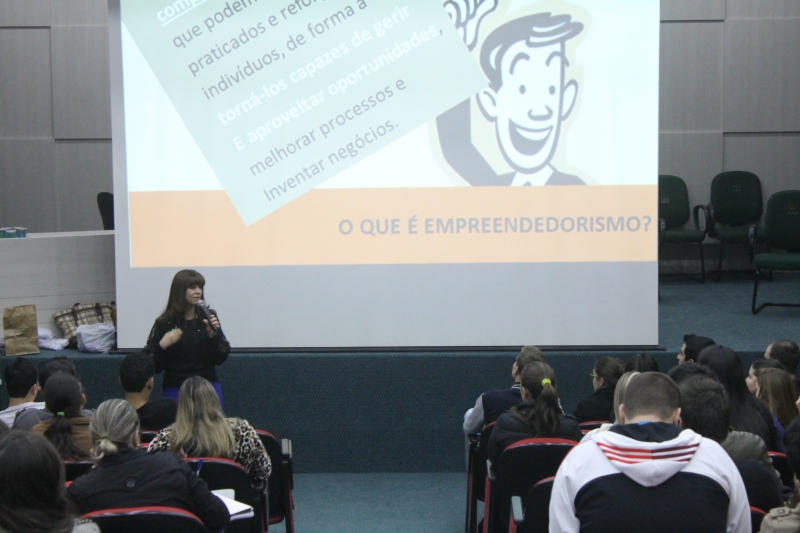 Acadêmicos do 6º e 8º períodos do curso de Administração e os acadêmicos do 8º período de Ciências Contábeis participaram ontem à noite (11), no auditório do bloco VI, de uma palestra sobre empreendedorismo. A palestrante, Olga Tschá, é consultora credenciada ao Sebrae e sócio-proprietária das empresas Comaker - Consultoria, Treinamento e Pesquisa e da Consultech - Consultoria e Curso Profissional e Gerencial. Olga mostrou para os estudantes os comportamentos que envolvem o empreendedorismo e as habilidades que podem ser desenvolvidas dentro da profissão.