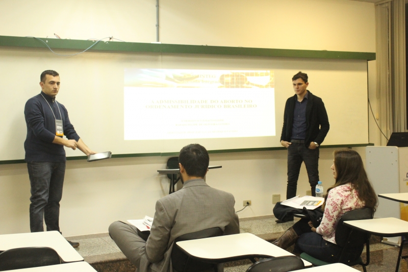 Já nas salas do segundo andar do bloco IV, os acadêmicos do curso de Direito apresentaram os resumos de trabalhos acadêmicos. "Esse é o 5º ano do evento e a primeira vez que o curso lança a Apresentação do Resumo Expandido. Para o colegiado é uma grata satisfação, mostra o quão importante é. A apresentação permite que o aluno desenvolva pesquisa, com isso, busca se aprofundar nas áreas de conhecimento de sua formação", declarou a coordenadora do curso de Direito, Viviana Bianconi.