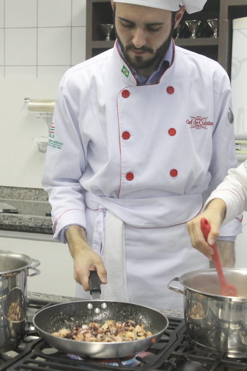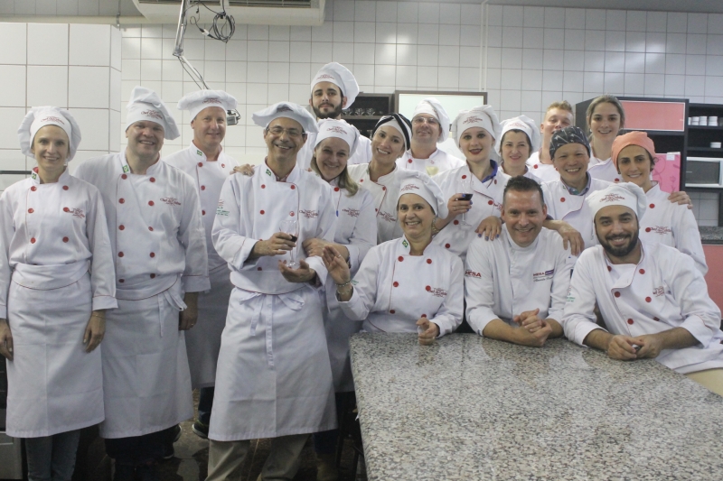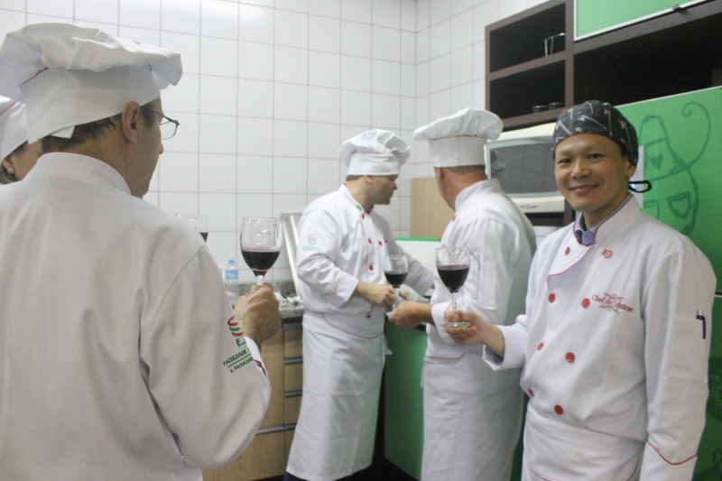 Mais uma edição do curso de Chef de Cuisine, oferecida pelo Núcleo de Aperfeiçoamento Profissional (NAP), foi finalizada no Centro Universitário FAG. Foram 12 encontros em que os alunos produziram pratos de acordo com a temática que era sugerida pelo Chef Alexandre Bressanelli. Durante o curso foi possível "visitar" as cozinhas de países importantes para gastronomia, como a Itália, França e Espanha. Os alunos aprenderam técnicas de cocção e complementaram as aulas com Pâtisserie e Garde Manger. "O objetivo é que eles aprendam técnicas diferentes da gastronomia e apliquem no dia a dia. Aqui eles aprenderam a fazer diversos tipos de molhos e cortes clássicos", explicou Bresanelli.