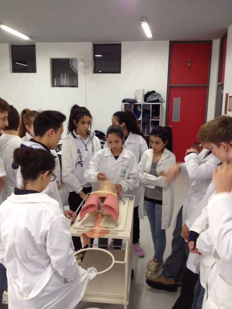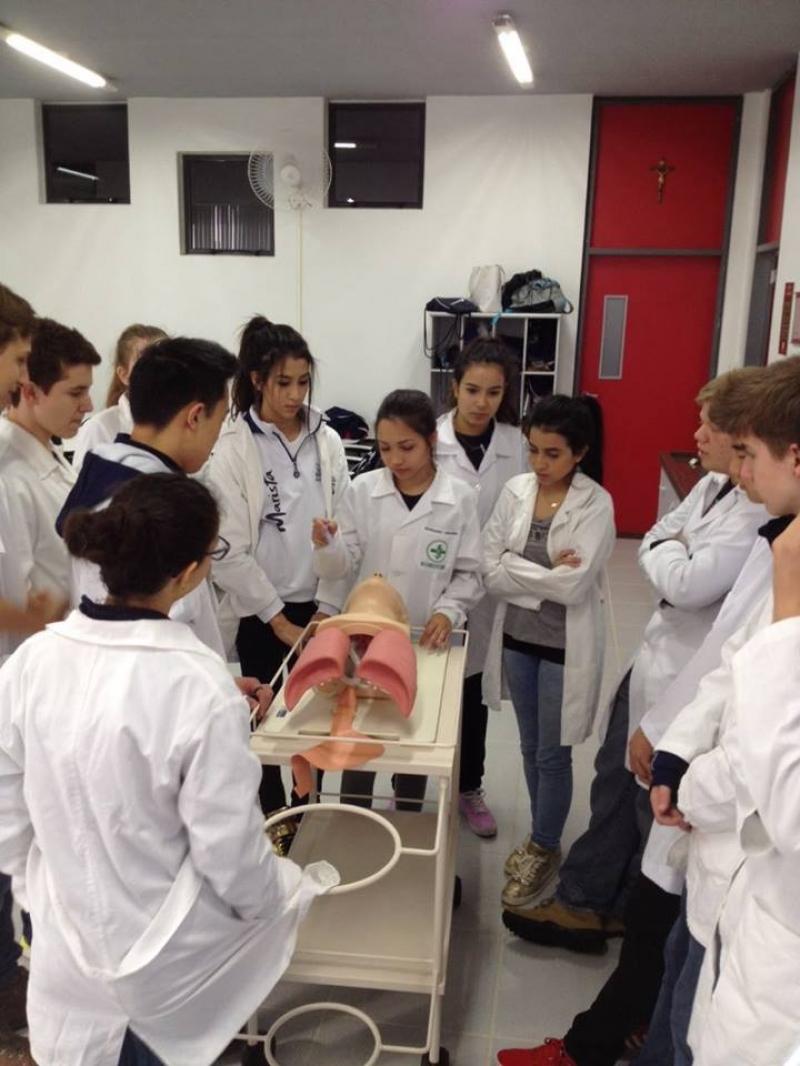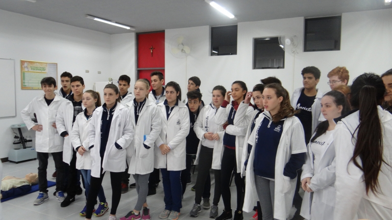 Estudantes do Colégio Marista de Cascavel participaram ontem (01) pela manhã de uma visita técnica aqui no Centro FAG. As turmas do 1º ano do Ensino Médio estavam acompanhadas do professor de Biologia, Luciano Mezzaroba, que é também docente de diversos cursos do Centro FAG. Durante toda a manhã, cerca de 90 alunos participaram de oficinas nos laboratórios de Anatomia, Semiologia e Fisiologia Humana. Acadêmicos de Medicina deram um apoio durante as atividades.