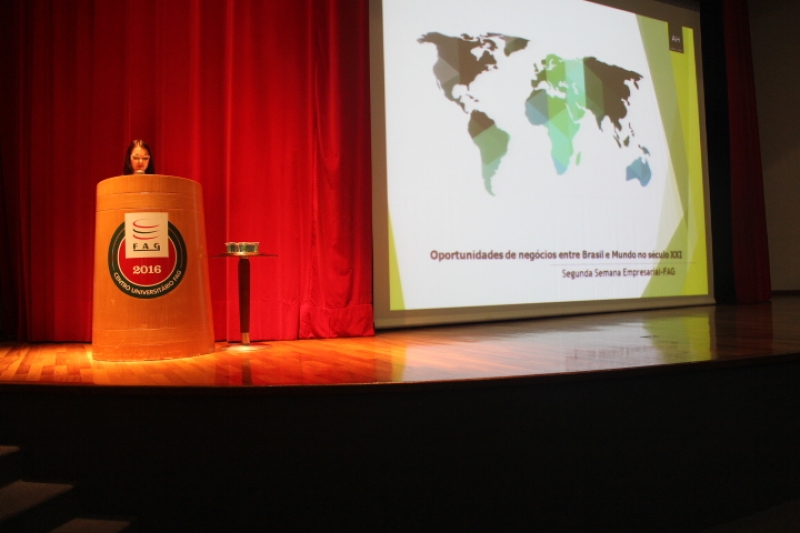 A primeira palestra foi com Angela Hirata. Ela é executiva, sócia-diretora da Suriana e esteve à frente da expansão internacional de marcas brasileiras. Foi diretora de Comércio Exterior da São Paulo Alpargatas, no período de janeiro de 2001 a dezembro de 2004, onde, junto com sua equipe, assumiu o desafio de promover uma expansão internacional, com foco no posicionamento da marca Havaianas. Hoje, sob nova direção, desde a sua aposentadoria, os produtos são exportados para mais de 80 países, mantendo o posicionamento e a ênfase na valorização da marca. A palestrante abordou o tema: "Oportunidades de negócios entre o Brasil e o Mundo no século XXI". "Quis passar aos acadêmicos que eu considero o Brasil um país repleto de riquezas que outros países não têm. Então, é possível fazer negócios com o mundo inteiro, sabendo trabalhar corretamente. Não importa o tamanho da empresa, mas sim aonde ela quer chegar. É preciso ter sensibilidade sobre como essa empresa será conduzida", explicou.