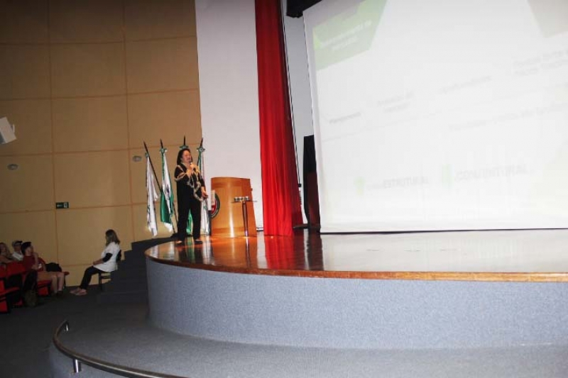 A abertura da Semana foi feita pela Coordenadora dos três cursos, Aline Gurgacz Ferreira Meneghel, que destacou a relevância dos temas tratados durante os três dias de programação. "O objetivo durante esse período do evento é aprender novidades do mercado, conhecer cases de sucesso e ampliar o universo de conhecimento de vocês. Os assuntos tratados são atuais e têm o intuito de deixá-los ainda mais preparados para darem seus passos sozinhos, depois que se formarem", falou à plateia formada por centenas de estudantes.