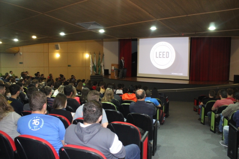 Guido falou sobre um tema atual: "Certificações de Leed". A sigla significa Leadership in Energy and Environmental Design e representa um sistema internacional de certificação e orientação ambiental para edificações, utilizado em quase 150 países, e possui o intuito de incentivar a transformação dos projetos, obra e operação das edificações, sempre com foco na sustentabilidade. "O engenheiro Civil tem o papel importante que é a forma de como cuidamos do planeta. Nessa noite eu falei sobre Certificações de Leed, que são soluções de engenharia", relatou. Guido conclui dizendo que é possível fazer melhor com menos. "Esse encontro serviu para abrir os olhos dos futuros profissionais, incentivando-os a realizar algo bem feito com menos, usando estratégias de sustentabilidade. Proposta que talvez eles não conhecessem ainda", contou.