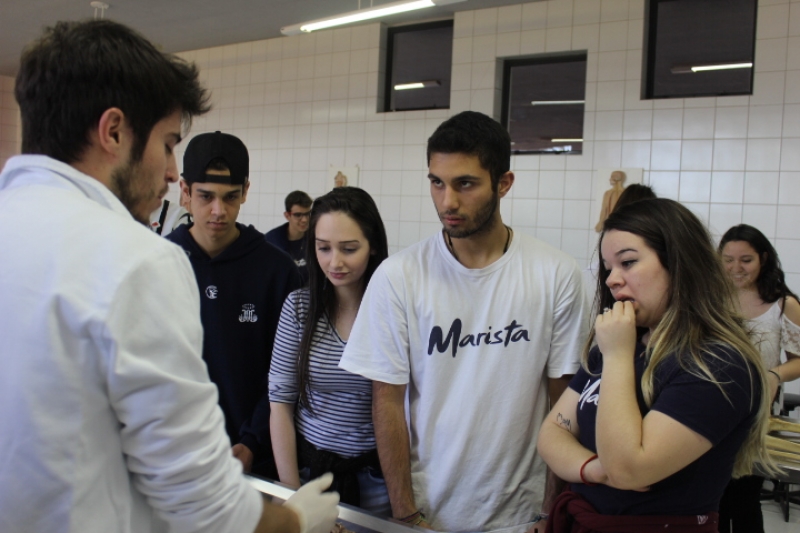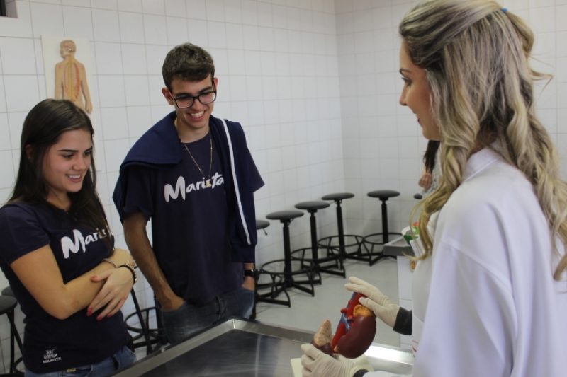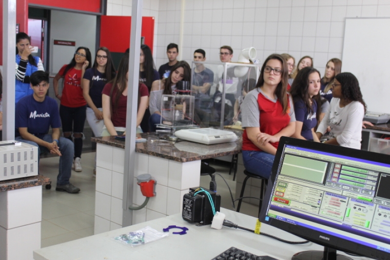 Cerca de 60 alunos do Colégio Marista passaram a tarde de ontem (22), aprendendo mais sobre os cursos do Centro Universitário FAG. Os estudantes estão na 3ª série do Ensino Médio, portanto, a um passo de distância do Ensino Superior. Eles foram acompanhados por monitores e recepcionados pela Gerente de Marketing, Josefa Moreno Delai. Os grupos foram divididos de acordo com as preferências dos alunos.