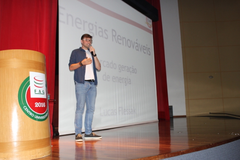Ainda na quinta-feira (22) os alunos participaram da palestra com o engenheiro Jorge Wissmann que falou sobre "Perícias Criminais na engenharia Civil". O encerramento mesmo aconteceu na sexta-feira (23) com a palestra do egresso do Centro FAG, o engenheiro Lucas Flessak que falou sobre "Energias Renováveis - Mercado da Geração de Energia". "Eu me sinto orgulhoso em estar aqui hoje. Fui aluno e trabalhei também aqui na FAG durante a minha graduação. Foi uma honra ser convidado num momento tão especial do curso, que é a comemoração dos 15 anos", relatou.