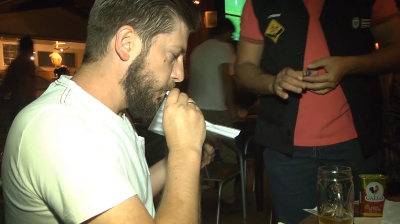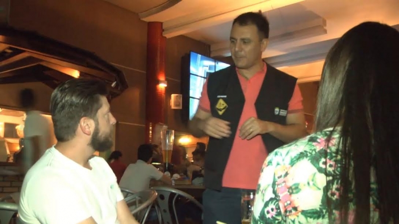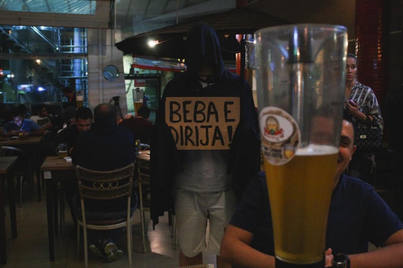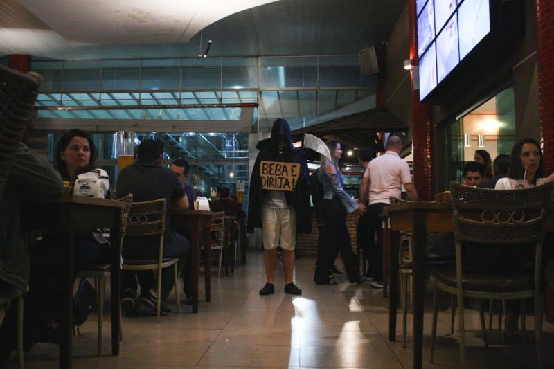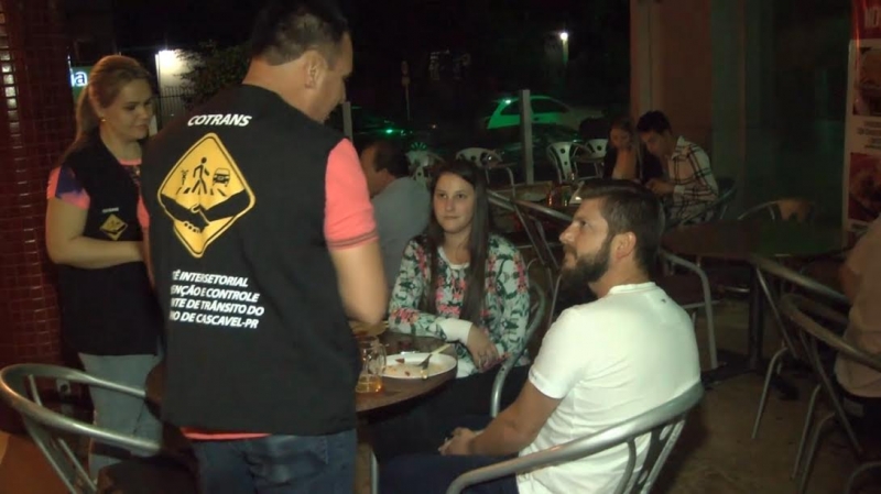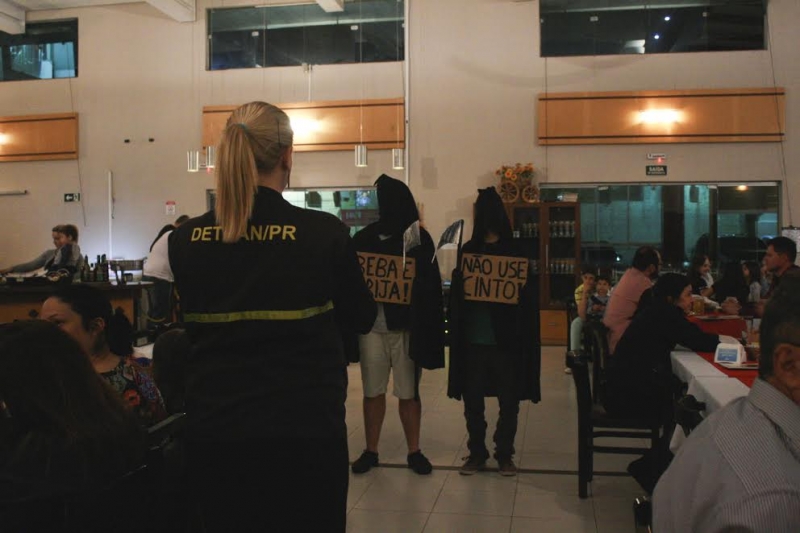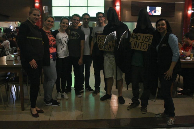 Os representantes do Cotrans junto aos acadêmicos desenvolveram uma ação para alertar os motoristas em um bar bastante movimentado da cidade. Além do bate-papo informativo em cada mesa, o grupo utilizou o teste de bafômetro descartável. Os alunos contribuíram de uma forma um pouco assustadora: caracterizados de morte, eles seguraram cartazes com dizeres como "beba e dirija". "A gente teve como objetivo mostrar para a galera como é a morte. Fizemos essa ação na disciplina primeiro em um semáforo, e a equipe de trânsito nos fez o convite para fazer a ação no bar. É para mostrar para as pessoas que a bebida pode causar grandes acidentes e tragédias", contou o aluno João Vitor Menegol. "A proposta da professora Celina para a disciplina já foi incrível por exercitar a criatividade fora do contexto normal dos alunos. Quando o COTRANS reconheceu a ação e convidou os alunos para replicá-la como parte da semana do trânsito ficamos muito honrados, pois é um reconhecimento espontâneo da qualidade do trabalho desenvolvido pelo curso. Nos enche de orgulho ver que o trabalho criativo dos nossos alunos está ultrapassando os muros do Centro FAG e beneficiando a comunidade em ações efetivas", pontuou a Coordenadora do curso de Publicidade e Propaganda, Laila Rotter Schmidt.