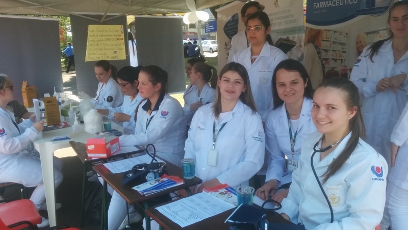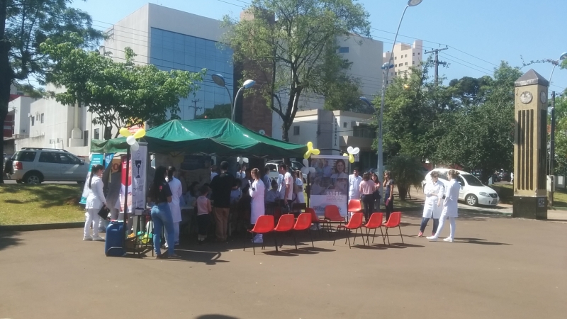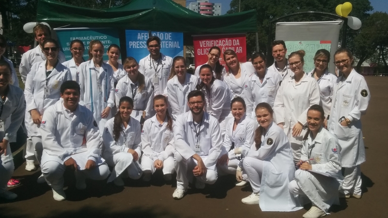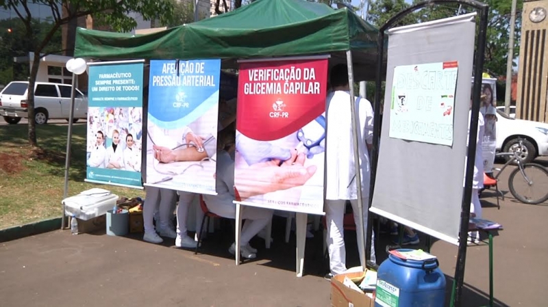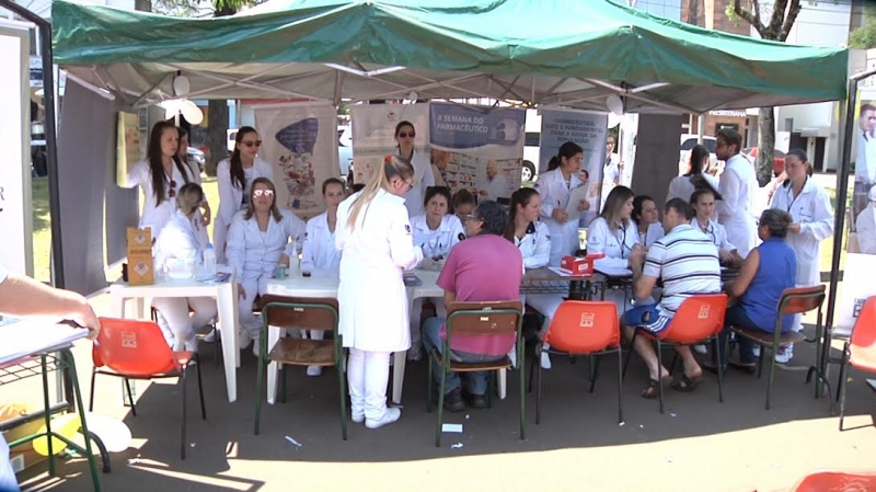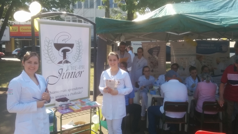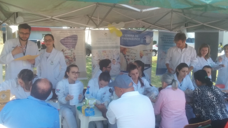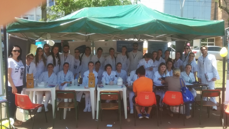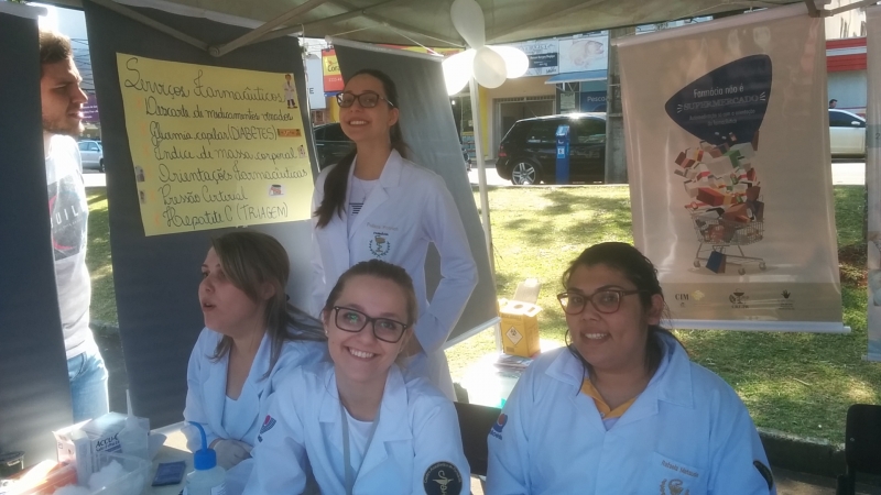 Acadêmicos do curso de Farmácia do Centro Universitário FAG realizaram no último sábado (24) uma atividade em comemoração ao Dia Internacional do Farmacêutico, lembrado no dia 25. Quem passou pela Praça do Wilson Joffre, no Centro de Cascavel, aproveitou serviços como: aferição de pressão arterial, verificação de glicemia capilar e índice de massa corporal, além de orientação ao uso racional de medicamentos e, também, recolhimento de medicamentos vencidos. A ação aconteceu em parceria com os alunos de Farmácia da Unioeste. Foram realizados mais de 400 atendimentos durante todo o dia.