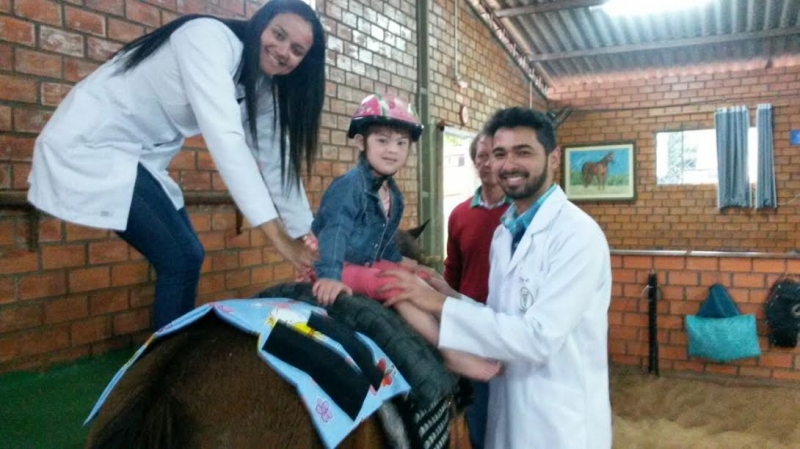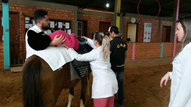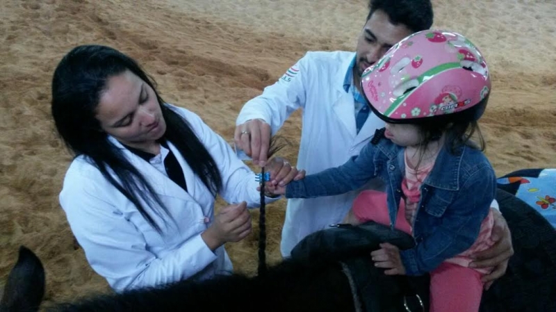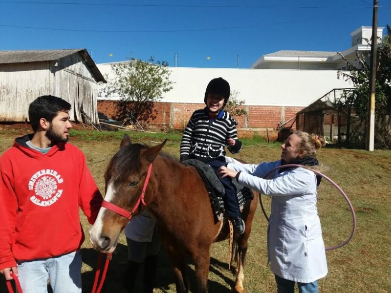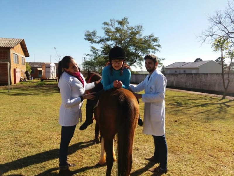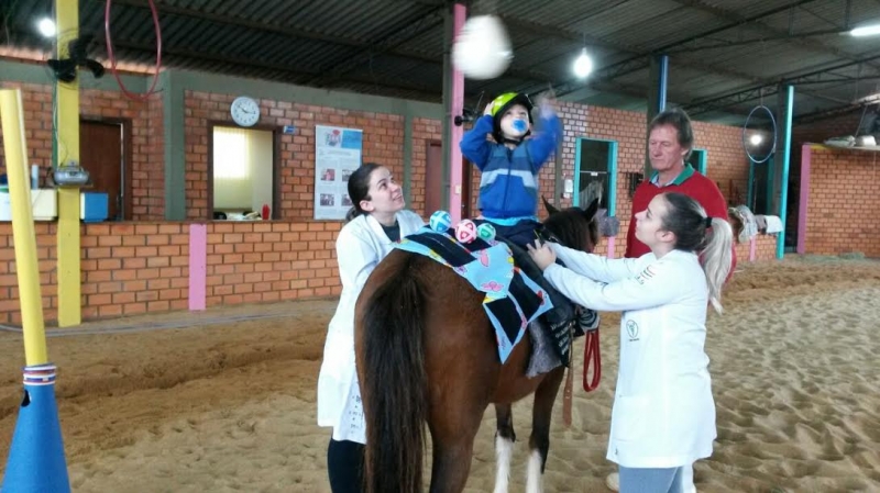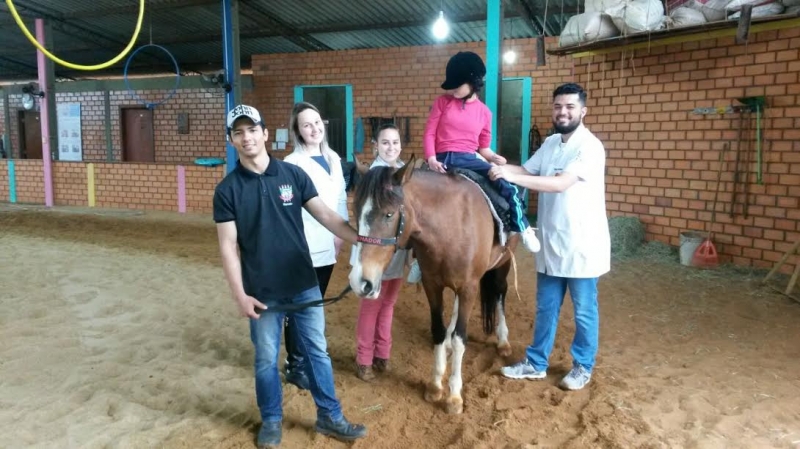 A Equoterapia utiliza o cavalo dentro de uma abordagem multidisciplinar e interdisciplinar, nas áreas de saúde, educação e equitação, buscando o desenvolvimento biopsicossocial. No momento, 6 pacientes estão sendo atendidos. O foco da atividade é em pacientes com distúrbios neurológicos, como síndromes e lesões cerebrais generalizadas. "A Equoterapia enfatiza o treino cinesioterapêutico e funcional, estimulando diferentes áreas do desenvolvimento motor, físico e cognitivo dos pacientes", cita a professora Cristina Romero, que coordena a atividade.