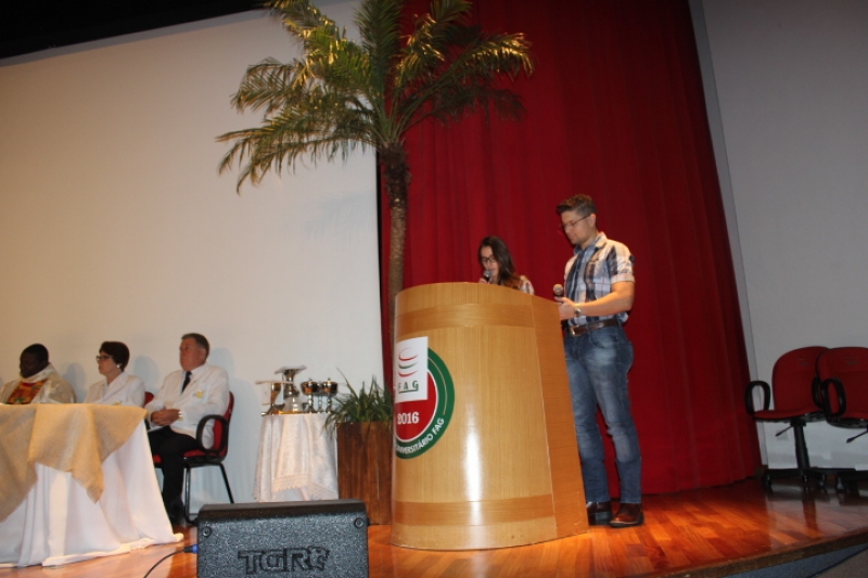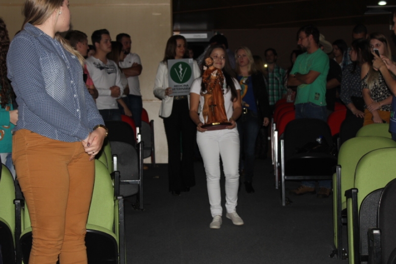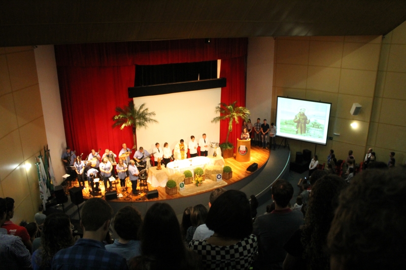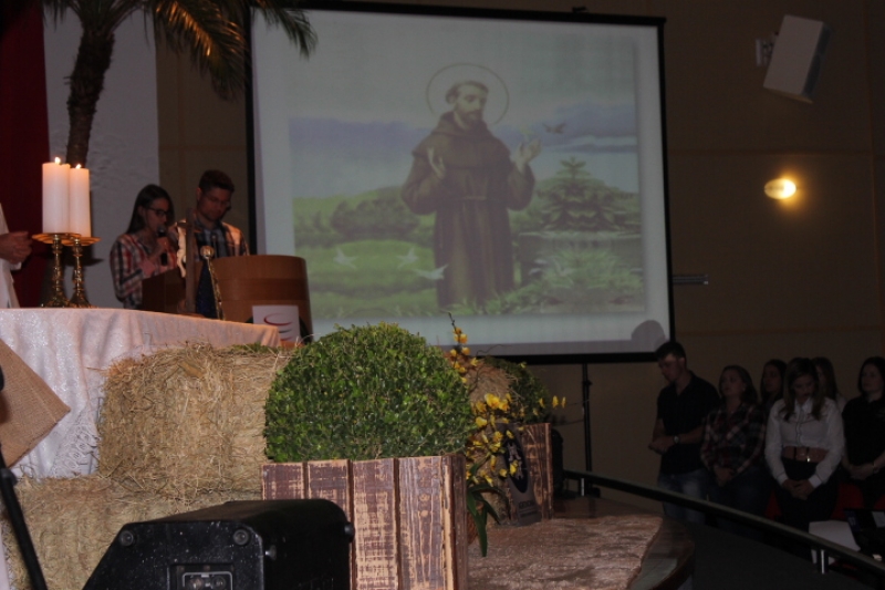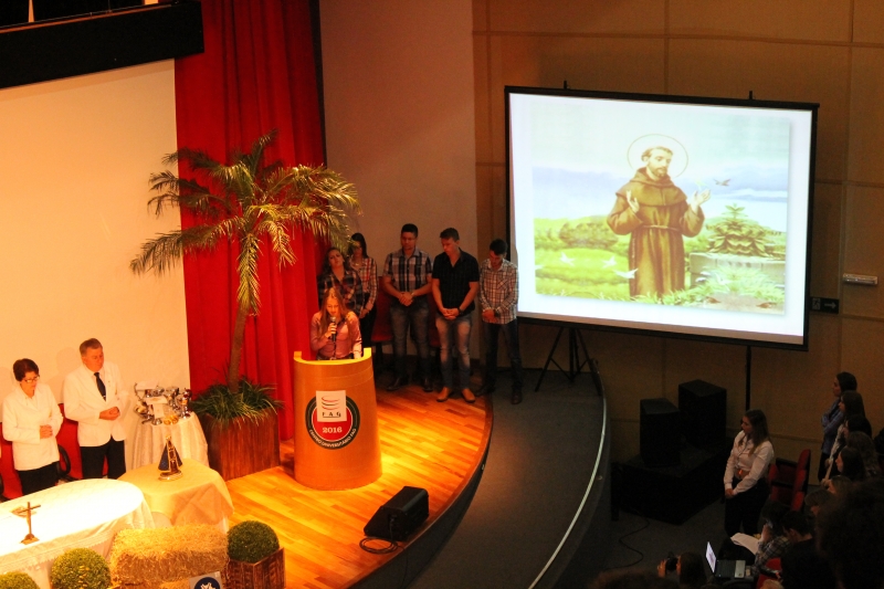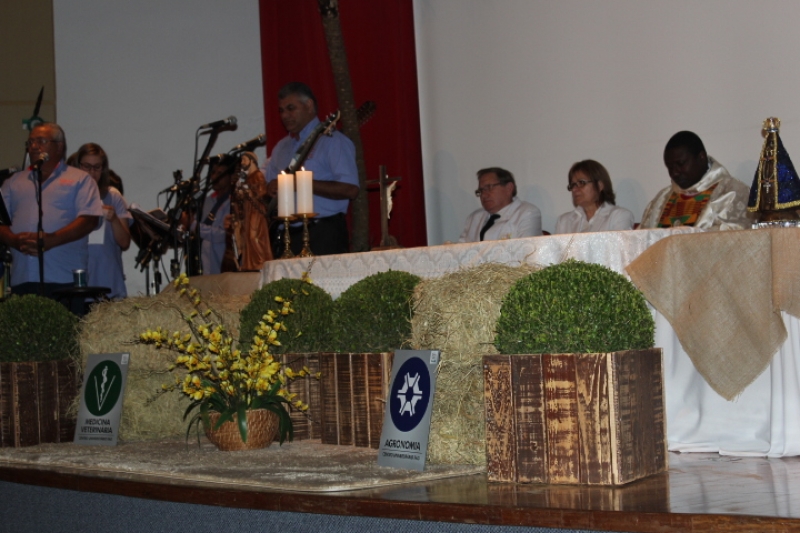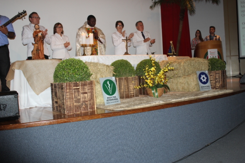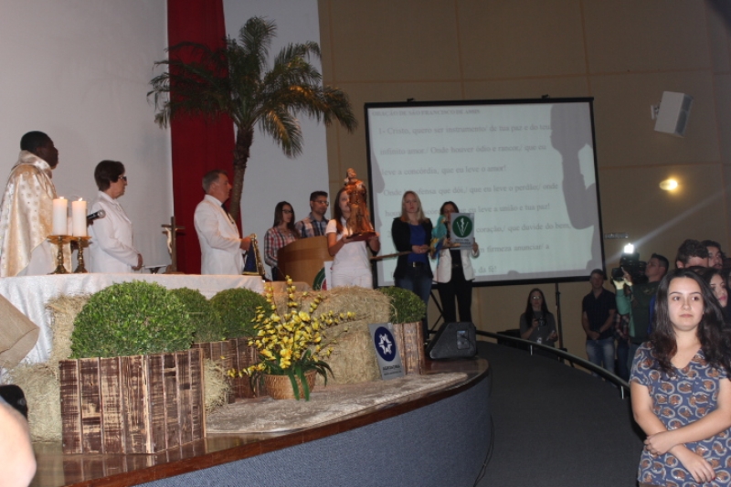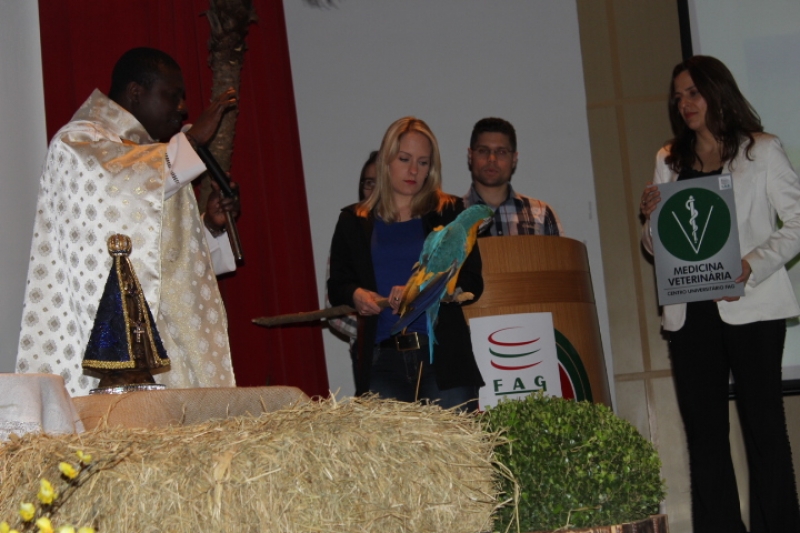Na celebração cheia de emoção, a imagem de Nossa Senhora Aparecida, padroeira dos agrônomos, foi apresentada pelos alunos. O homenageado da noite, São Francisco de Assis, foi levado até o altar montado no palco pelas mãos dos acadêmicos de Medicina Veterinária. Para simbolizar todos os animais uma arara, moradora do Viveiro do Centro FAG, recebeu a bênção do Padre Benjamin, celebrante e também acadêmico de Psicologia da Instituição.