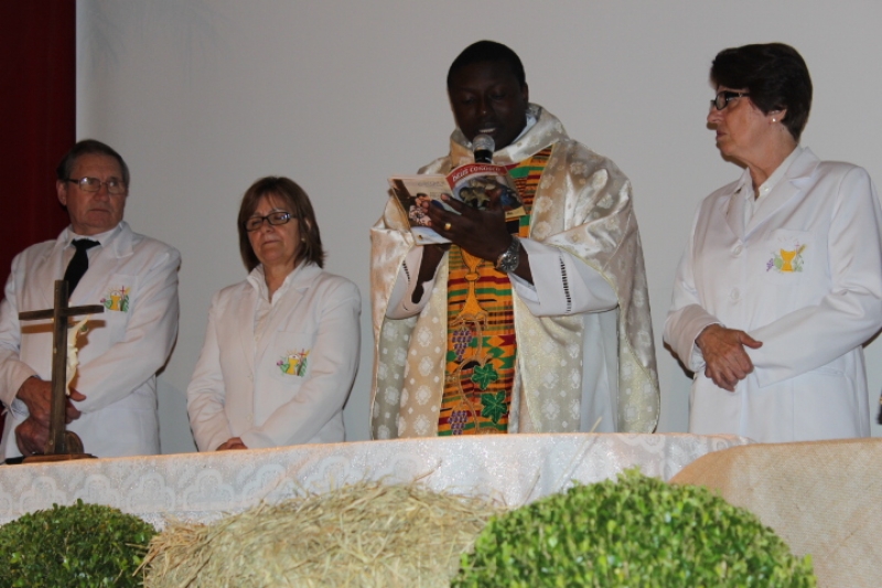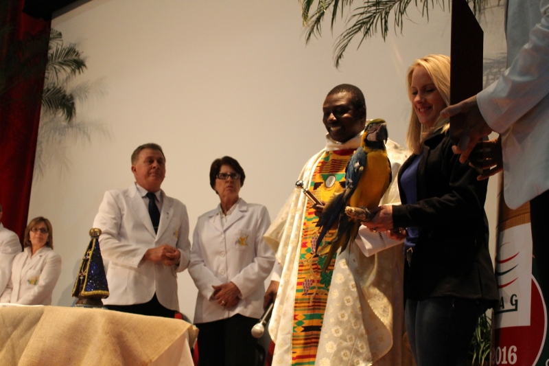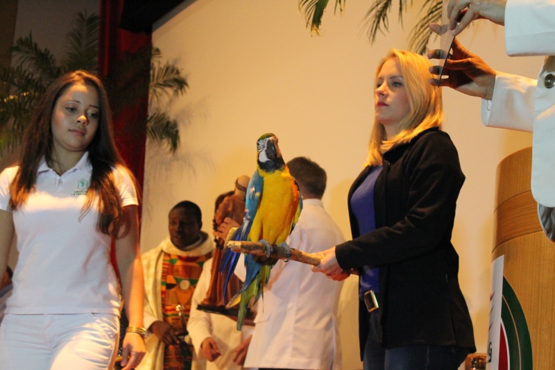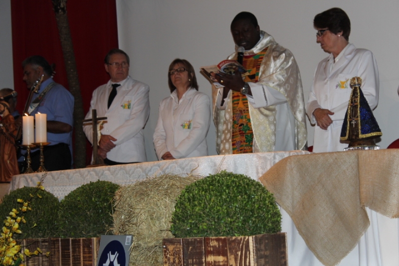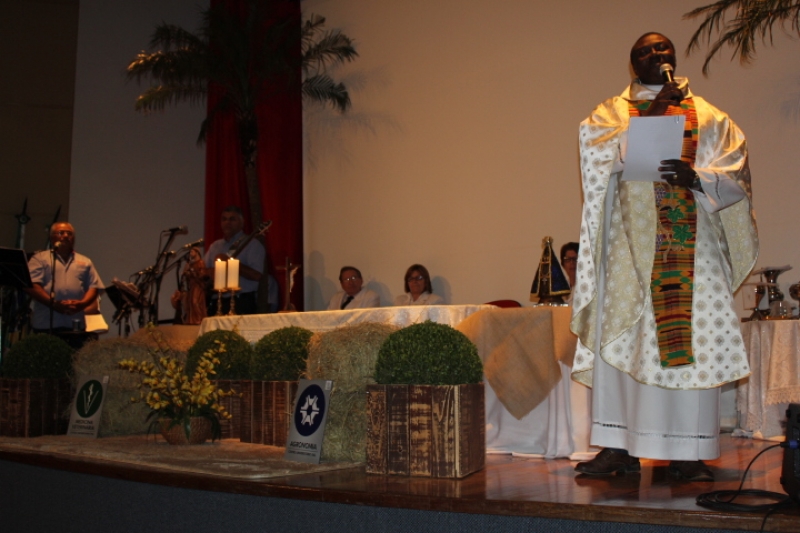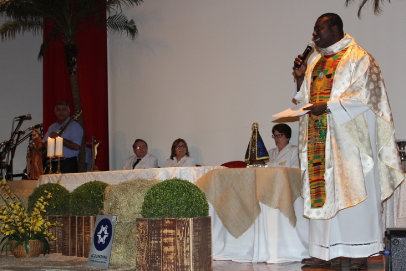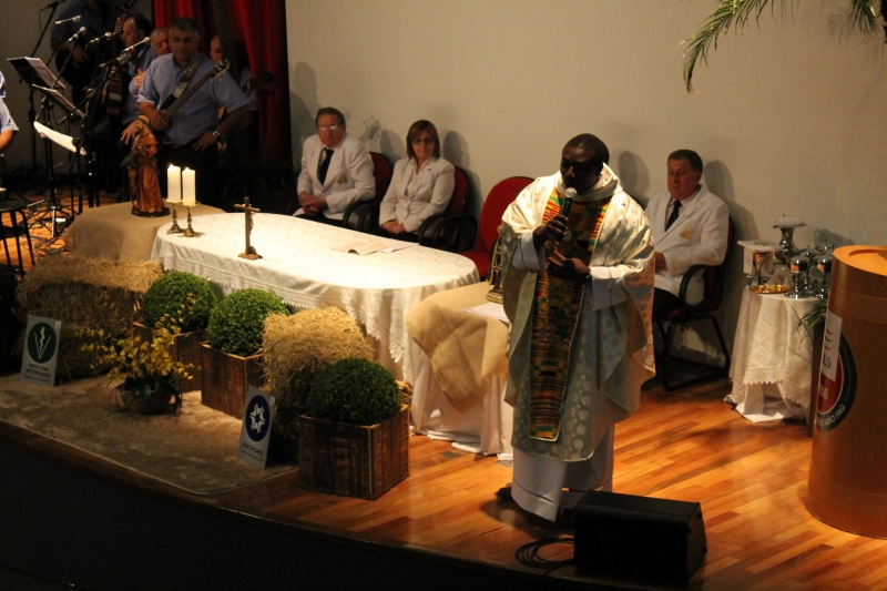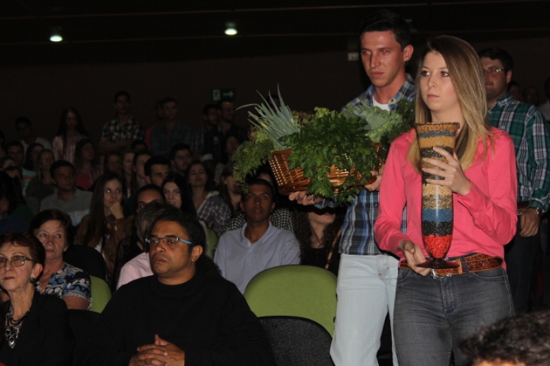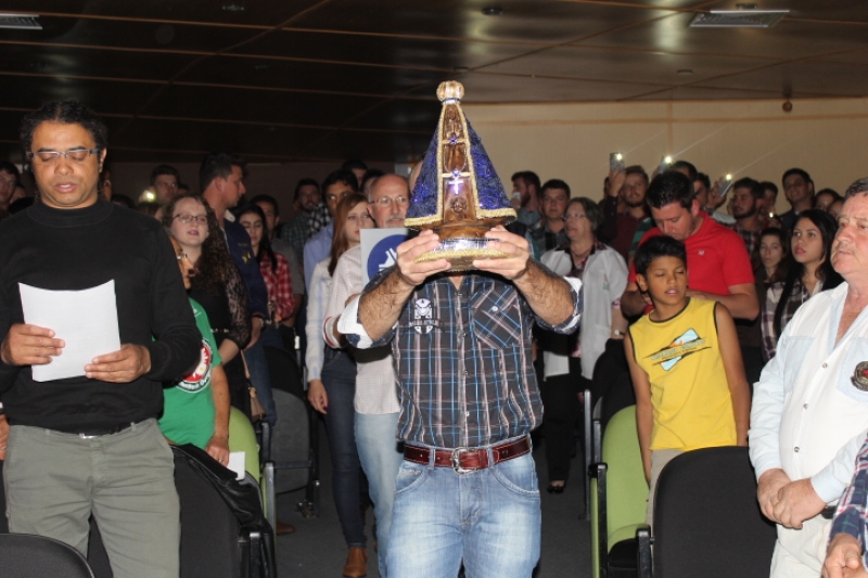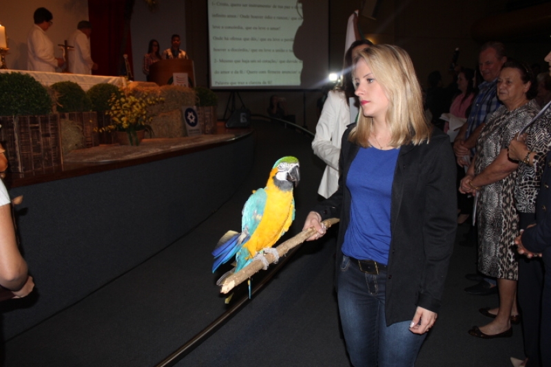 Na celebração cheia de emoção, a imagem de Nossa Senhora Aparecida, padroeira dos agrônomos, foi apresentada pelos alunos. O homenageado da noite, São Francisco de Assis, foi levado até o altar montado no palco pelas mãos dos acadêmicos de Medicina Veterinária. Para simbolizar todos os animais uma arara, moradora do Viveiro do Centro FAG, recebeu a bênção do Padre Benjamin, celebrante e também acadêmico de Psicologia da Instituição.