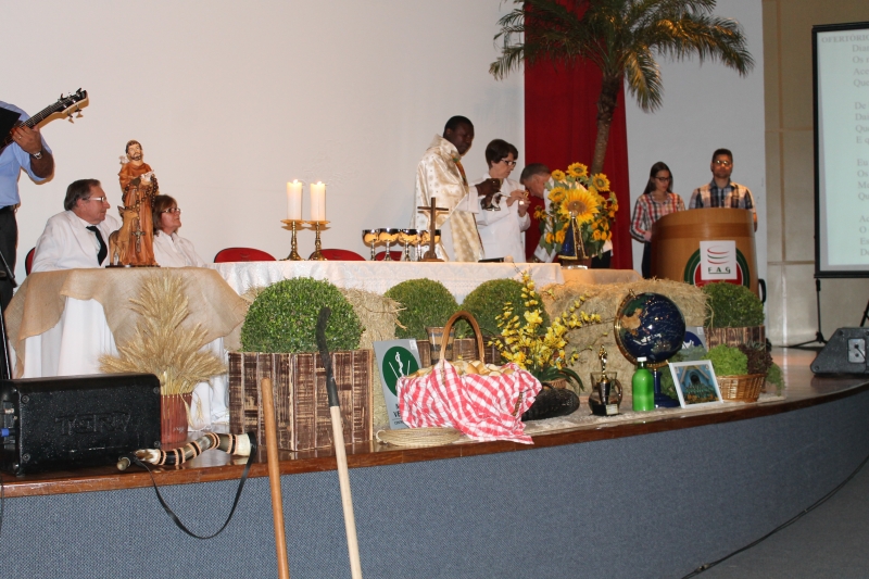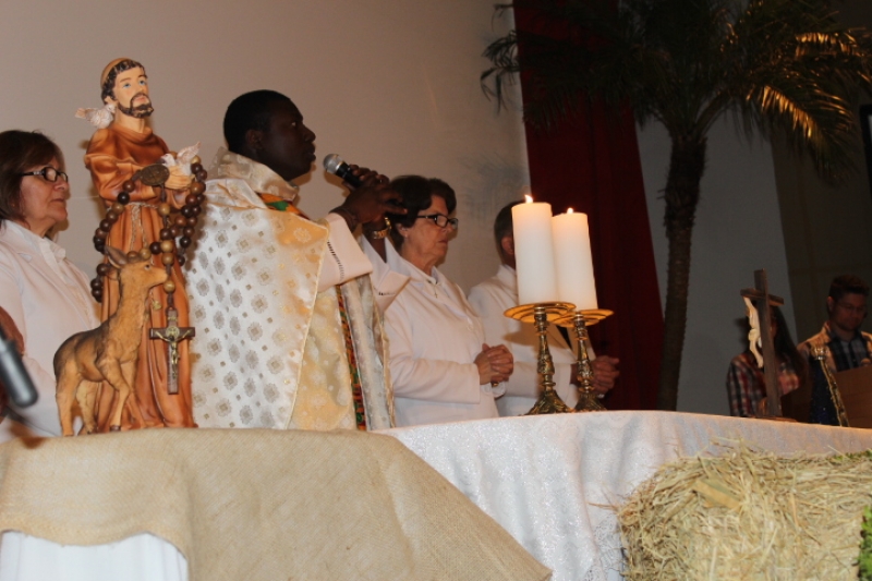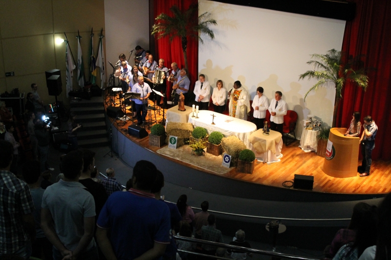 Da decoração aos trajes, tudo lembrava o campo. Foi nesse clima que o Anfiteatro da Reitoria do Centro Universitário FAG foi palco ontem (04) da 2ª Missa Sertaneja. A celebração religiosa, com toque rural, foi realizada pela primeira vez em 2012 e, este ano, novamente foi feita para comemorar o Dia de São Francisco de Assis, padroeiro da Fundação Assis Gurgacz, e também padroeiro dos animais, além de ser uma homenagem pelo Dia do Engenheiro Agrônomo, lembrado no dia 12 de outubro e pelo Dia do Médico Veterinário, comemorado no dia 9 de setembro.