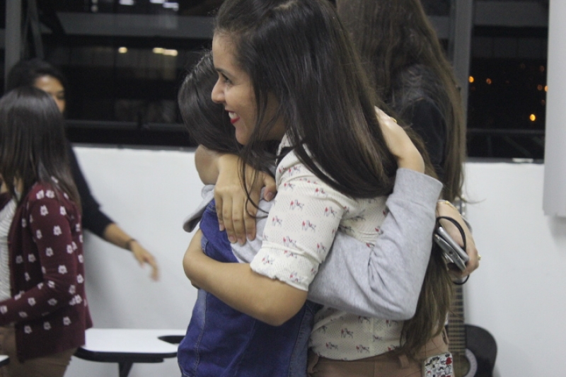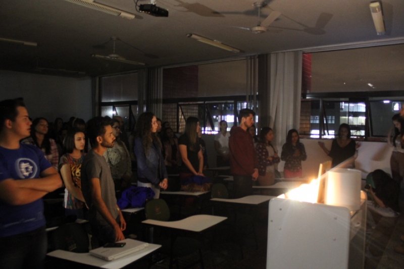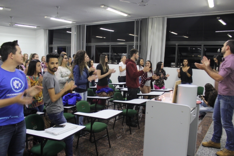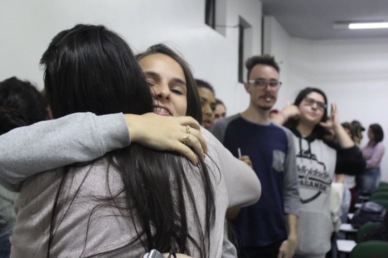 A acadêmica de Fisioterapia, Edina Andrea Achimitt, conta que sempre quis participar, mas acabava esquecendo. "Hoje consegui vir, é importante a gente reservar um momento para Deus", contou. O tempo é curto, leva de dez a quinze minutos, mas já o suficiente para deixar uma mensagem de amor. "A gente quer unir a fé e a razão dentro da faculdade, acreditamos que todos precisamos desse momento espiritual para que possamos agir com sabedoria como profissionais", relatou um dos organizadores, Matheus Scalfoni.