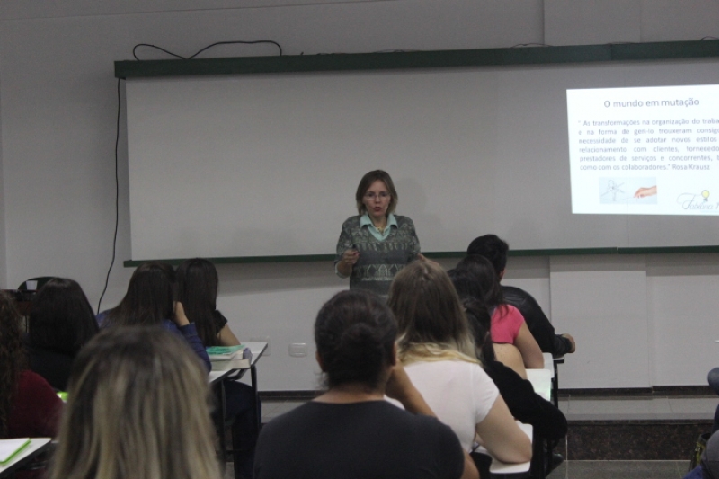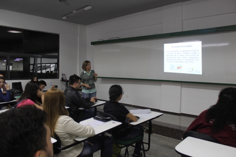 Acadêmicos do 6º, 8º e 10º períodos do curso de Psicologia do Centro FAG participaram na quarta-feira (05) de um debate sobre Psicologia Organizacional e Gestão de Pessoas, com a profissional Fabiana Poletti, que trouxe aos alunos as diversas formas de envolver a empresa e o funcionário. A atividade faz parte da disciplina "Psicologia das Organizações e Trabalho: Gestão de Pessoas", ministrada pela professora Lais Raycik.