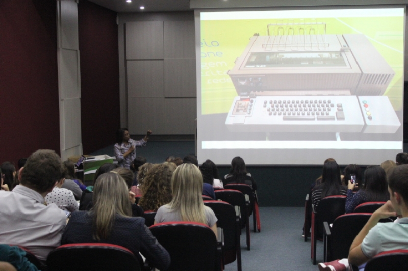 A jornalista Dulcinéia Novaes da RPC de Curitiba compareceu ao evento que reuniu professores, acadêmicos e egressos