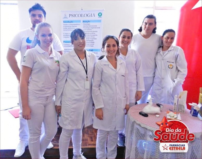 Acadêmicos do curso de Farmácia do Centro Universitário FAG participaram da 11ª edição do Dia da Saúde da Farmácia Estrela, no dia 28 de setembro. Durante a atividade, os alunos atenderam aos participantes, realizando aferição de pressão arterial, verificação de glicose e realizando orientações sobre o uso correto de medicamentos.