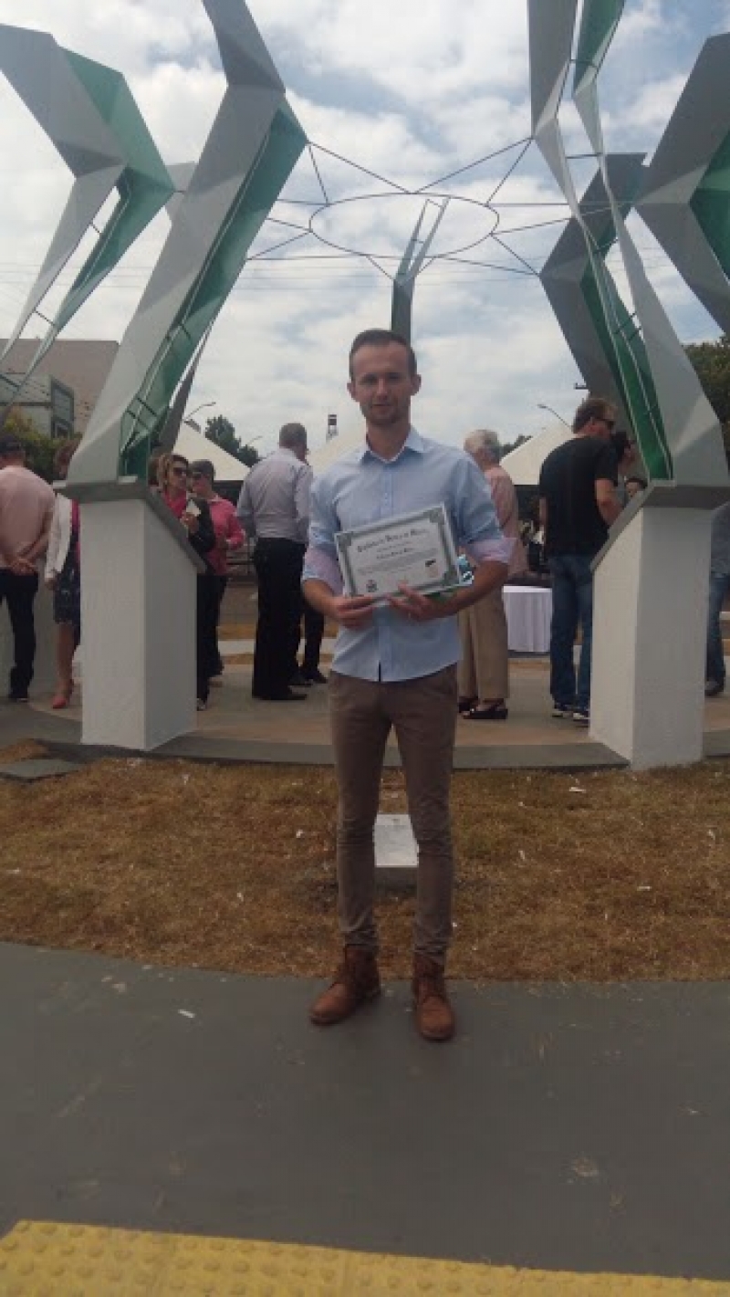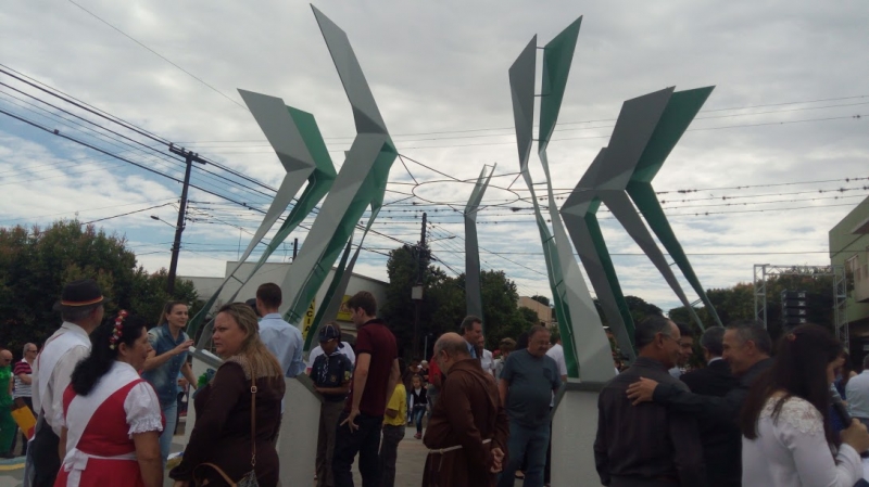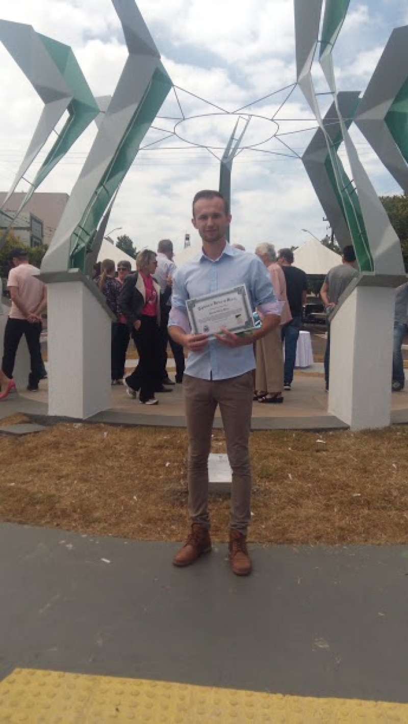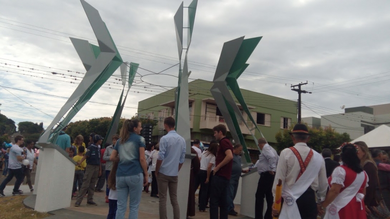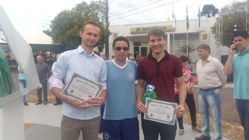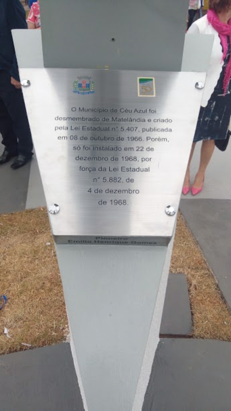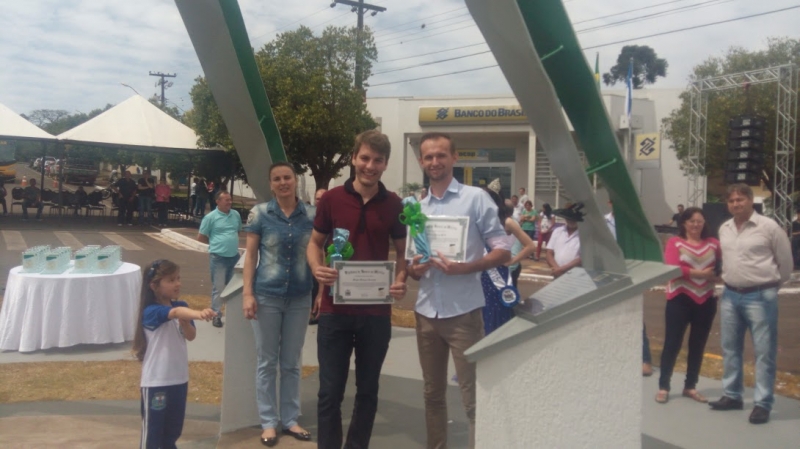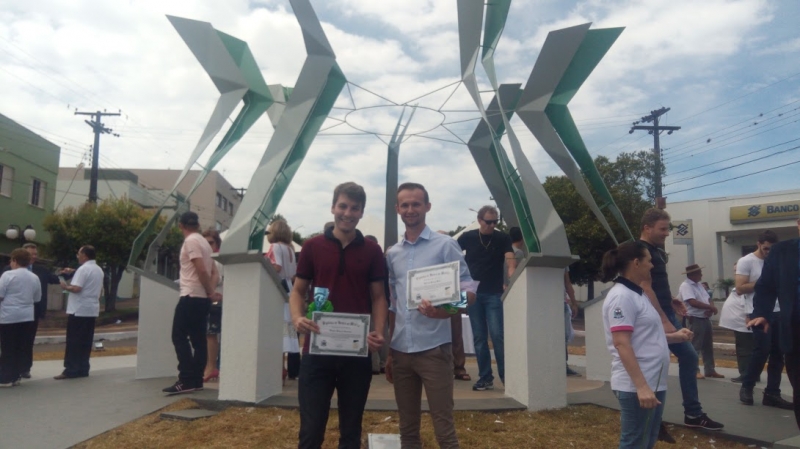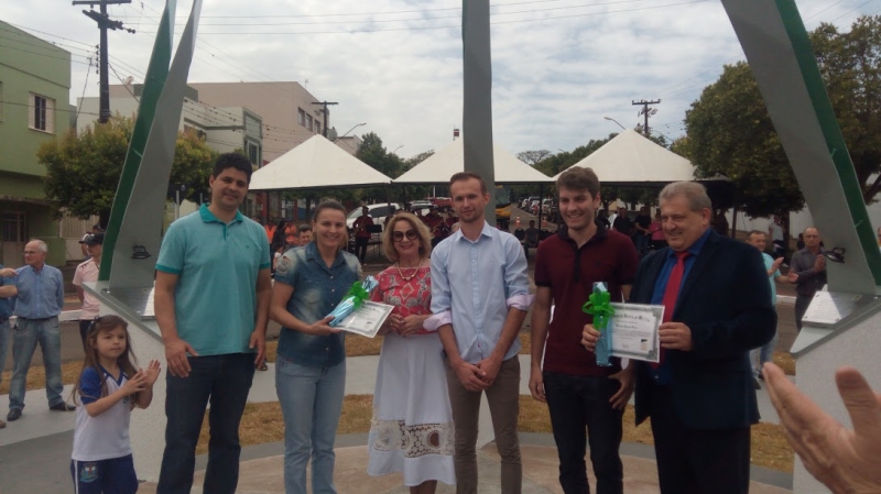 Os acadêmicos Jefferson Rodrigo Muller e Thaeylor Sereniski ficaram em primeiro lugar e no último sábado (08) os futuros arquitetos participaram da inauguração do monumento, podendo conferir de perto suas ideias no projeto executado pela prefeitura de Céu Azul. Jeferson explica que para realizar a proposta foi feito um levantamento a partir de depoimentos das famílias pioneiras do local, para que chegassem a um conjunto de ideias que remetesse uma conexão na história de cada habitante de Céu Azul. "O nosso objetivo foi que as pessoas visualizassem as formas do monumento e visualizassem a origem do munícipio", falou.