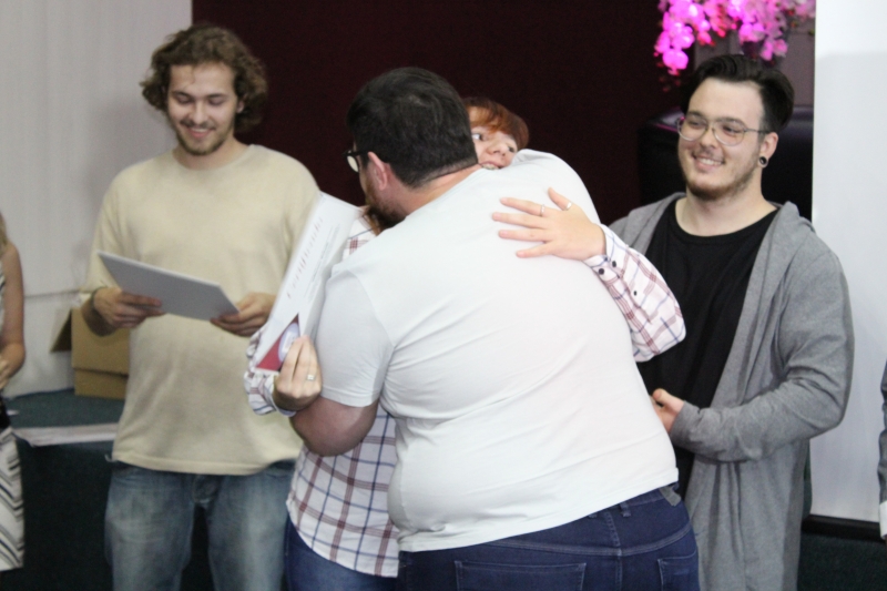 Na sexta-feira (14), aconteceu o encerramento das comemorações dos 15 anos de história do curso de Publicidade e Propaganda do Centro FAG. O dia foi dividido em dois momentos, à tarde os acadêmicos participaram de uma oficina sobre "Adaptar-se é preciso: O atendimento em audiovisual" com o Diretor de Atendimento da Kaffe Films, produtora de Santa Catarina, Louis Museka, realizado no auditório do Bloco II. "Eu expliquei como funciona o atendimento em audiovisual, tanto regional quanto nacional. Passei para eles que o atendimento de uma produtora de vídeo ele precisa ser mais completo, uma vez que você está lidando com um produto específico. Para inseri-los na prática, passei um exercício para que eles entendessem um roteiro de vídeo, usando um trabalho do qual participei. Na sequência mostrei o vídeo pronto e orçamento dele. A intenção foi fomentar esse desejo dos alunos em trabalhar nessa área e também para que fortaleçam o lado empreendedor", relatou.