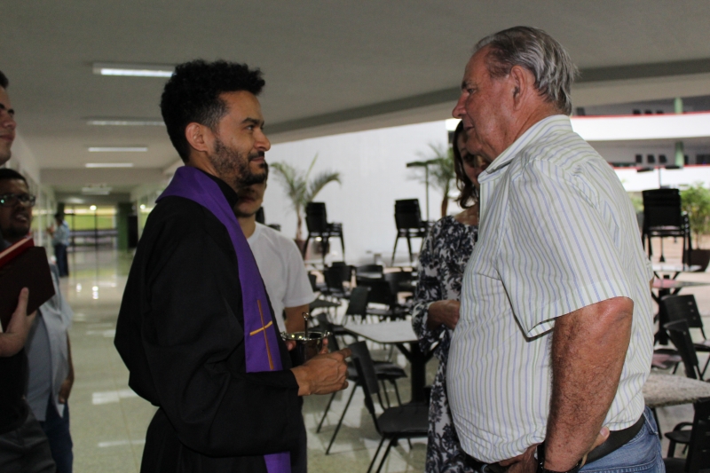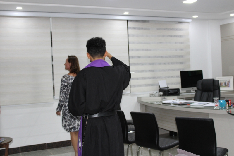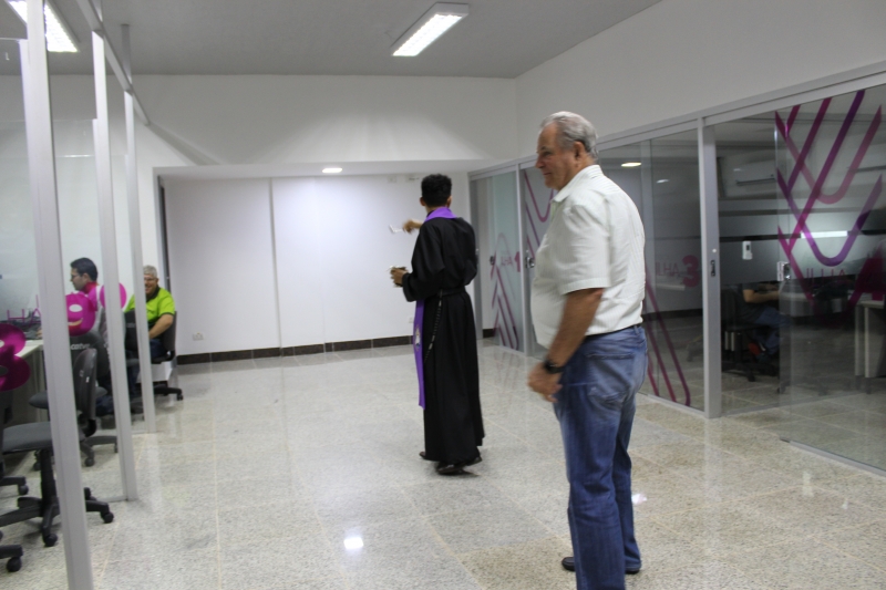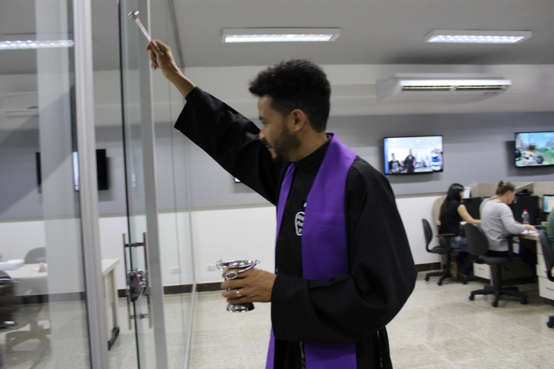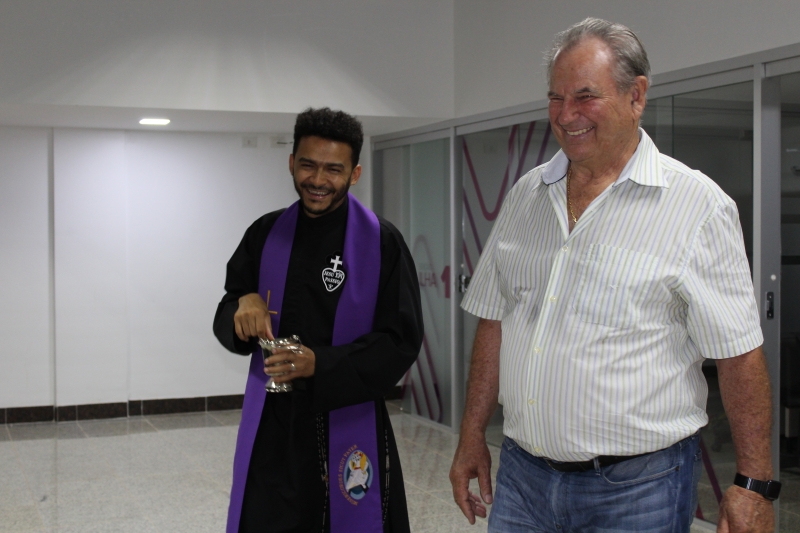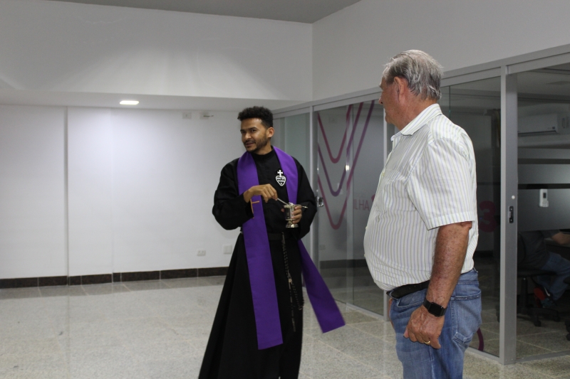 O Reitor do Centro Universitário FAG e Presidente da Catve, Assis Gurgacz, acompanhado da filha e Pró-Reitora Administrativa, Jaqueline Gurgacz Ferreira, inaugurou o espaço e trouxe para dar abençoar cada um dos setores o Padre Franscisco das Chagas da Silva Marques, da Paróquia São Pedro. O religioso aspergiu água benta nos espaços e colaboradores. "É muito bonito este sentimento de humildade. O ser humano precisa colocar Deus em primeiro lugar em qualquer projeto que ela planeja e executa", manifestou.