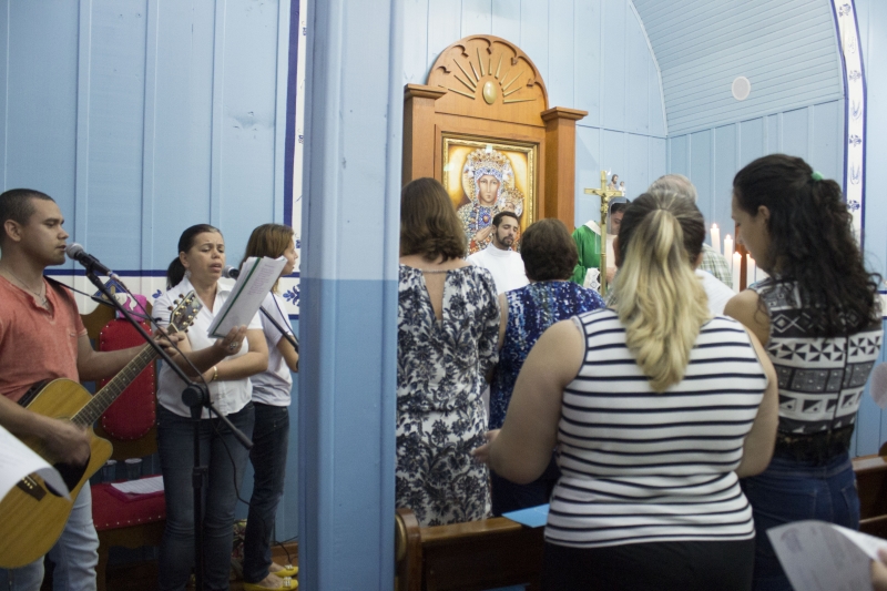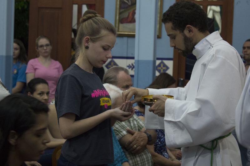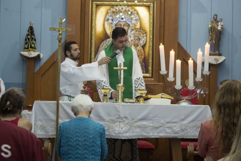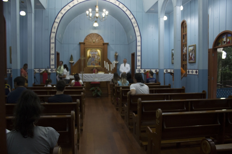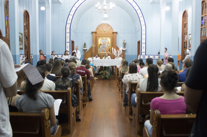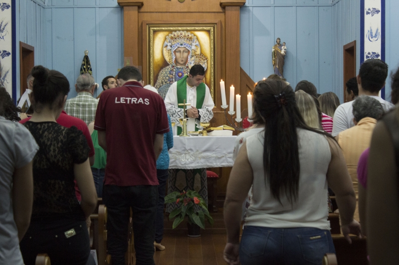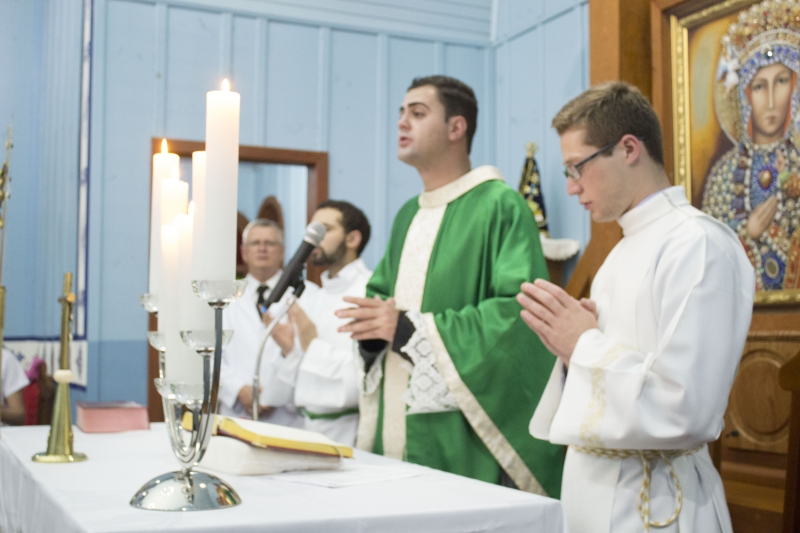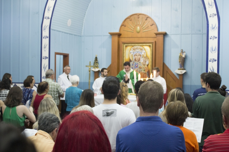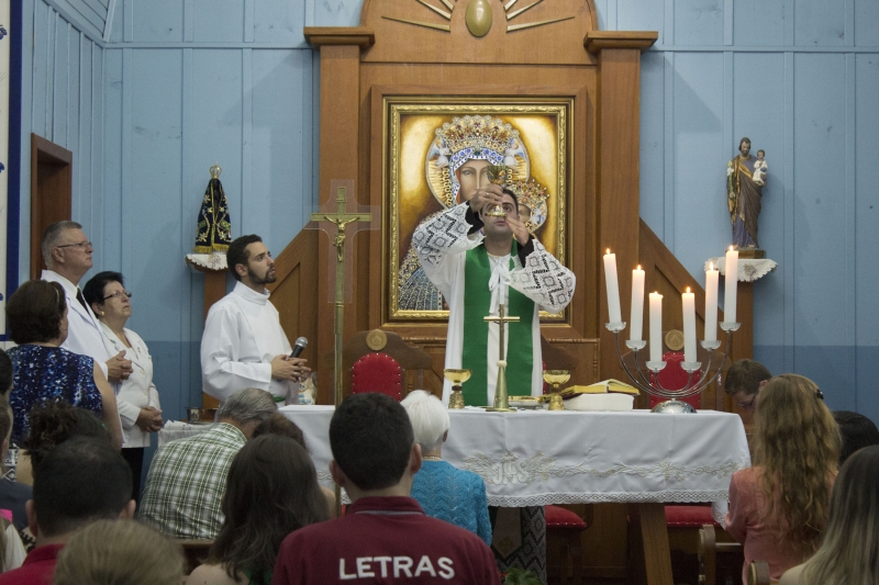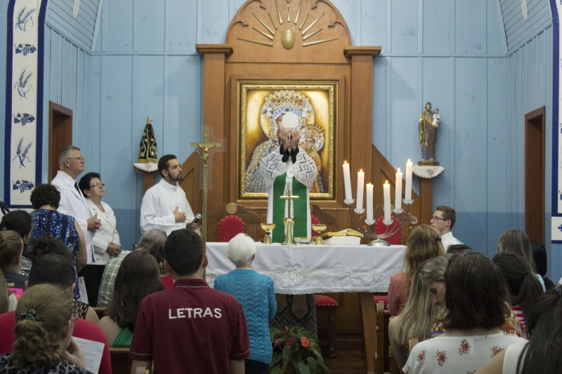 A cerimônia eucarística foi realizada na Capela Czestochowa localizada no bosque da instituição