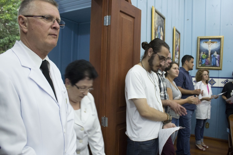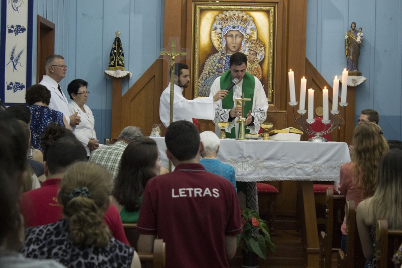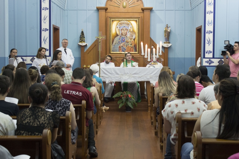 Ontem à noite (19) acadêmicos, funcionários e reitores do Centro Universitário FAG participaram da missa de encerramento do ano letivo da Pastoral Universitária Arquidiocesana. A cerimônia foi realizada na Capela Czestochowa, que fica no bosque do Centro FAG. O celebrante, Padre Jorge Ricardo Linder, ficou encantado com a capela e com a participação da comunidade acadêmica. "Eu não sabia que havia uma capela tão bonita aqui dentro. Foi uma benção celebrar com vocês essa comunhão", falou.