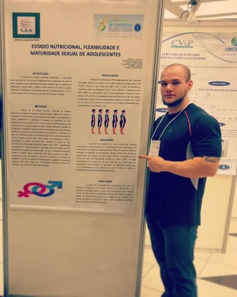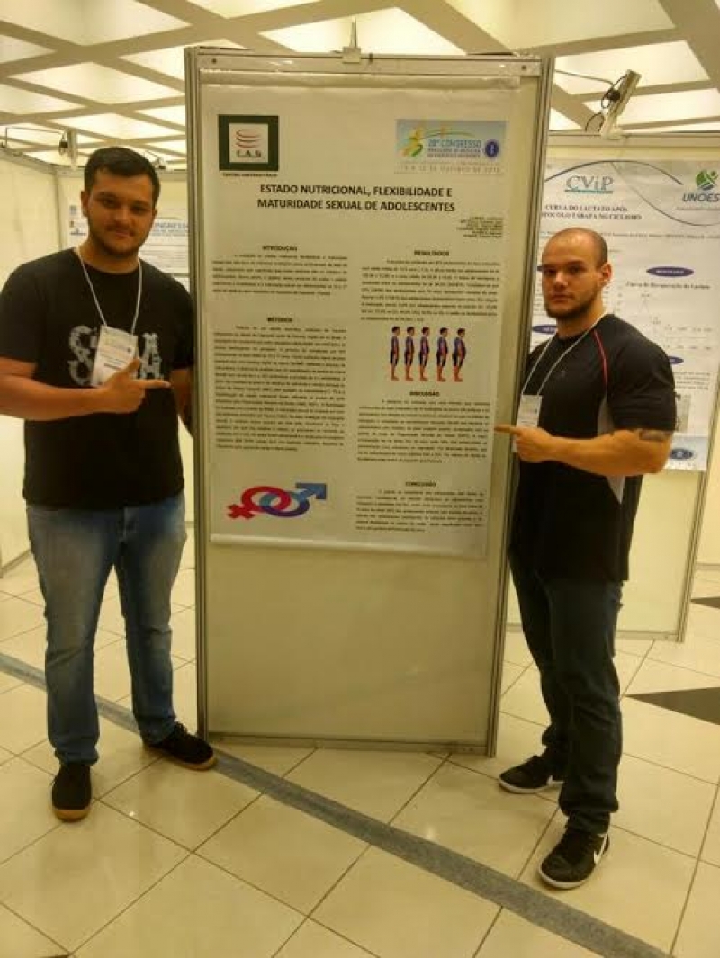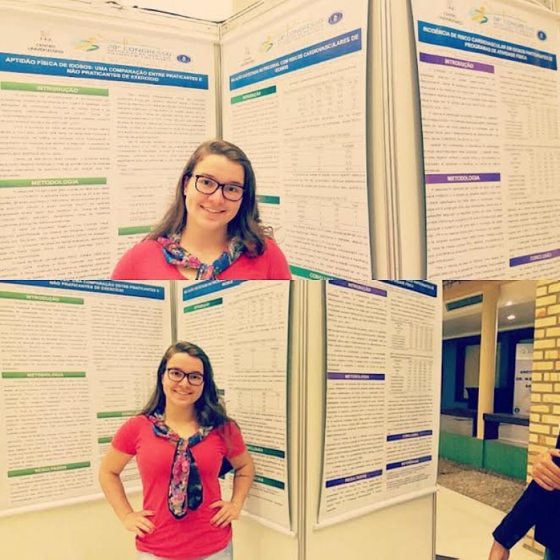 Os alunos Eduardo José Mattiolo e Guilherme Carpes apresentaram o trabalho com o título: "Estado Nutricional, Flexibilidade e Maturidade Sexual de Adolescentes", sob orientação do professor Dr. Everton Paulo Roman. O trabalho exposto por eles refere-se ao tema defendido pela dupla no TCC. As alunas Yasmim Maria de Souza e Thaciane Carvalho apresentaram dois trabalhos: "Estratégias de Marketing Pessoal do Personal Trainer em Academias", também referente ao TCC e orientado pelo professor Dr. Everton Paulo Roman e "Análise Cinemática do Soco Guiaku Tsuki na Postura Zenkutsu Dachi do Karatê", orientado pelo professor Me. Lissandro Moisés Dorst, desenvolvido em sala referente à Disciplina de Biomecânica de Cinesiologia. O trabalho com o título "Análise Cinemática do Lançamento do Dardo" foi exposto pelas alunas Priscila Macagnan e Giuliane Grutzmacher e desenvolvido em sala dentro da Disciplina de Biomecânica de Cinesiologia, ministrada pelo professor Me. Lissandro Moisés Dorst. "Aptidão Física de Idosos: Uma Comparação entre Praticantes e não Praticantes de Exercício", "Incidência de Risco Cardiovascular em Idosos Praticantes de Programas de Atividade Física" e "Relação de Estado Nutricional com Riscos Cardiovasculares" foram os trabalhos apresentados pela acadêmica Bruna Frizon Grobs. Todos as produções dela foram desenvolvidas pelo Grupo de Pesquisa em Biodinâmica do Exercício e Movimento, que ela faz parte. O Grupo tem como coordenadora a Professora Dr. Debora Bouscheid Dorst e o egresso Leonardo Trevisol Possamai.