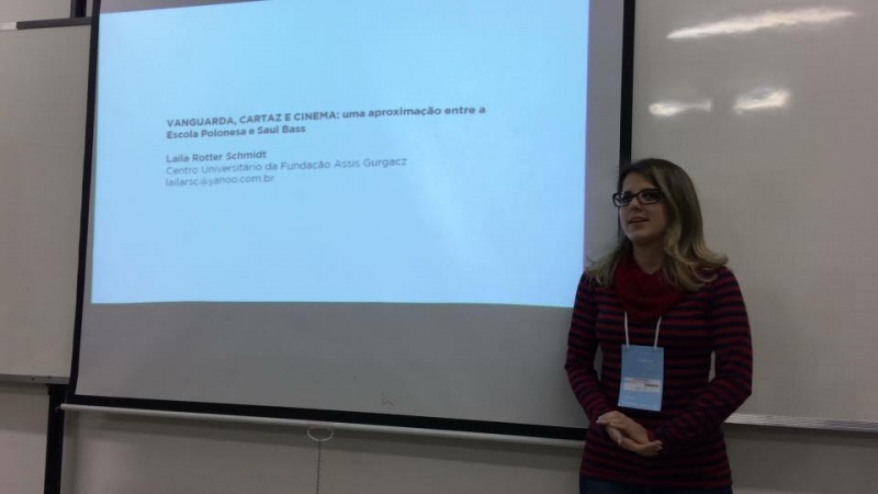 Laila Rotter Schmidt apresentou o artigo intitulado "Vanguarda, Cartaz e Cinema: uma aproximação entre a Escola Polonesa e Saul Bass"