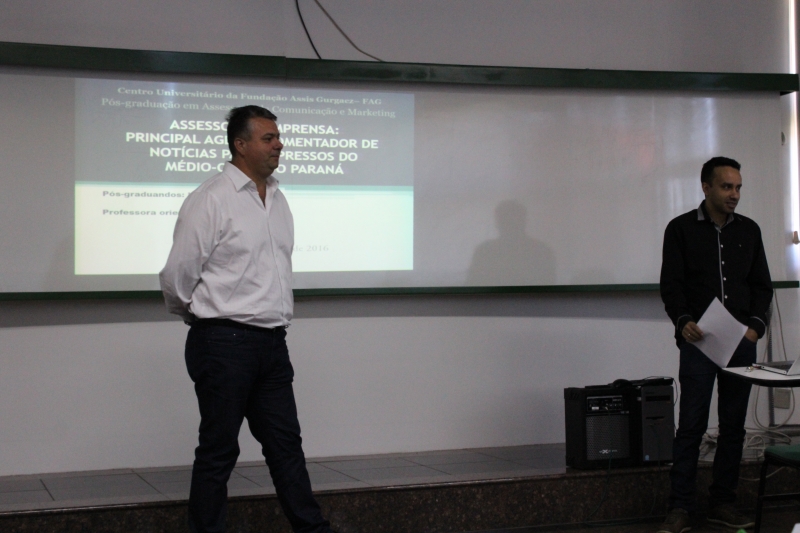 O acadêmico de Assessoria de Comunicação, Leonildo Mendes, ao chegar na reta final do curso, explica a importância de uma especialização. "Uma vez que somos jornalistas e atuamos na área, a pós-graduação complementa e é um ganho extra no sentido de dar suporte no aprendizado que obtivemos na graduação, aprendemos todos os dias, mas não é o suficiente, precisamos buscar conhecimento acadêmico sempre". Ele atua na profissão há 30 anos. Apresentou o projeto sobre a influência do Assessor de Imprensa no jornal impresso.