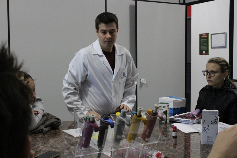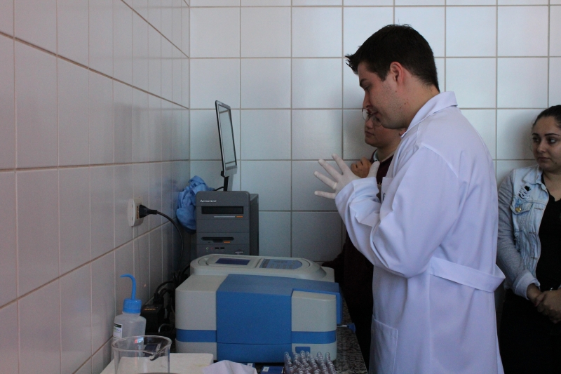 A aula foi prática e os alunos tiveram a oportunidade de analisar exames de urina e glicose no Laboratório de Análises Clínicas